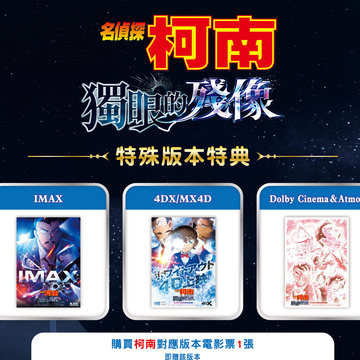 官方表示,至戲院購買 IMAX、4DX、MX4D、Dolby Cinema、Dolby ATMOS 任何版本電影票一張,將會贈送對應版本的 A3 尺寸限定特典海報一張。目前《