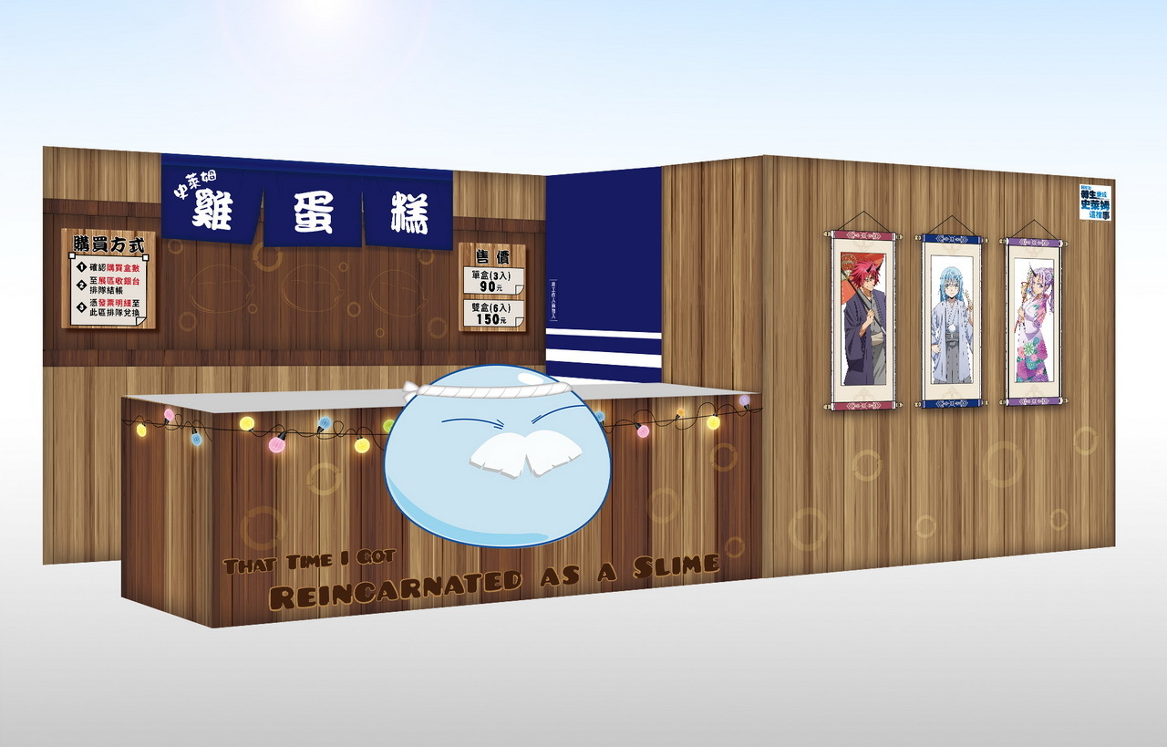 除了逛逛展區合影留念,挑選喜愛動漫的週邊商品,還有特色限定餐點—《轉生史萊姆》造型雞蛋糕可以品嘗。更有贈品可以帶回家,消費不限金額即送《
