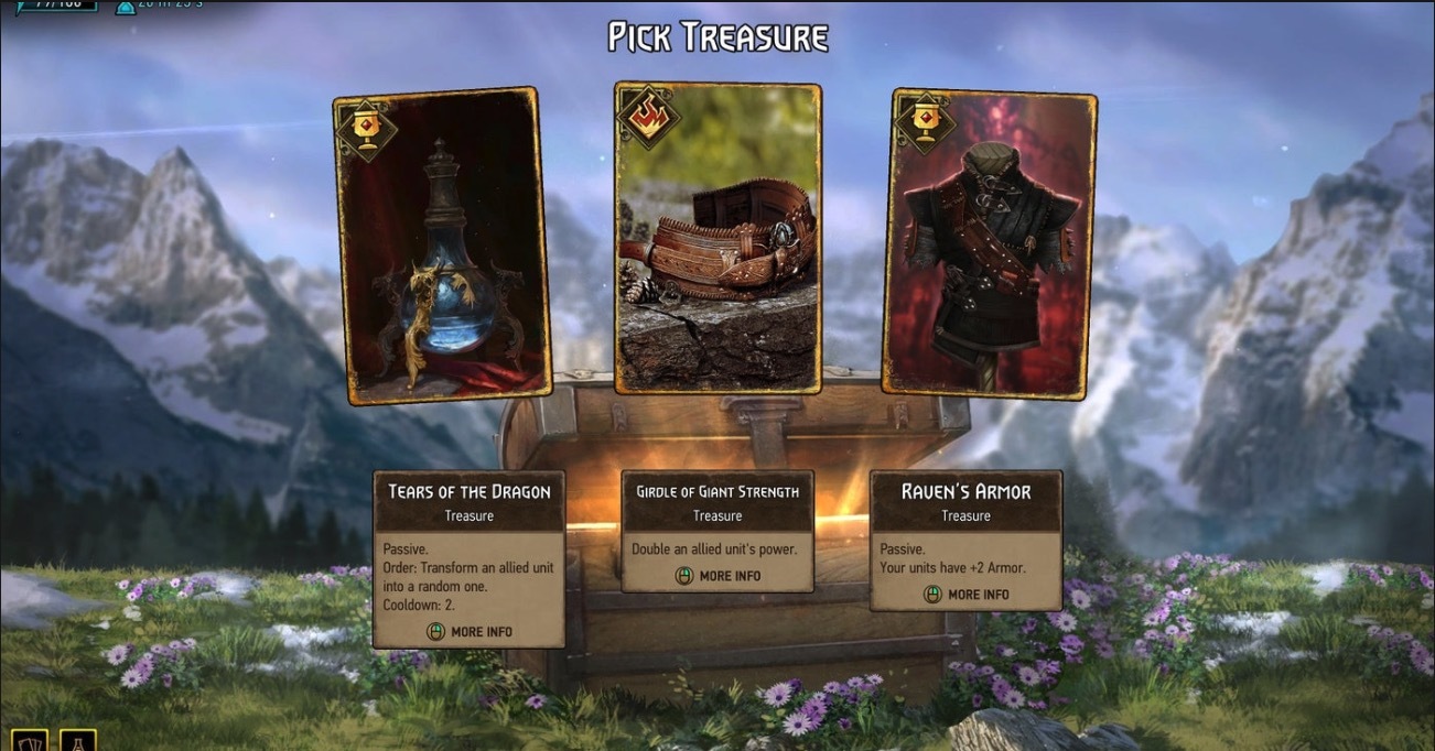 玩家在戰鬥過程中能累積經驗值,一旦經驗值滿升級後即可入手新的卡牌。而玩家可透過衡量自身技術,來選擇不同的難易度進行挑戰。CD Projekt RED 估計,如果玩家想要收集所有卡片並完成 《
