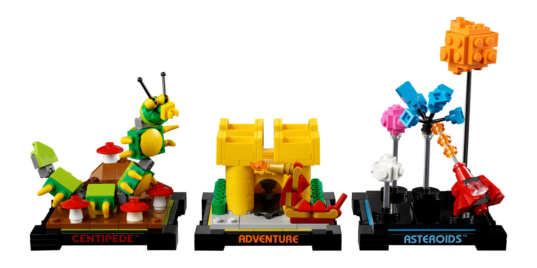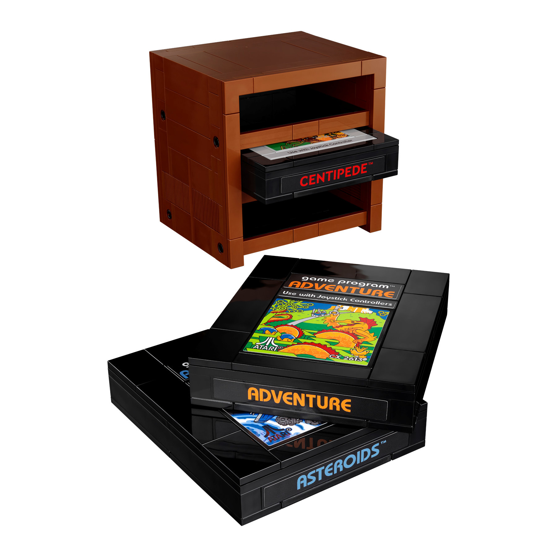 盒組中還隨附 3 塊經典遊戲卡匣《爆破彗星(Asteroids)》、《魔幻歷險(Advanture)》、《大蜈蚣(Centipede)》,卡匣封面也重新繪製成樂高風格,並提供卡匣收納架與還原遊戲內容的情境場景組。