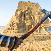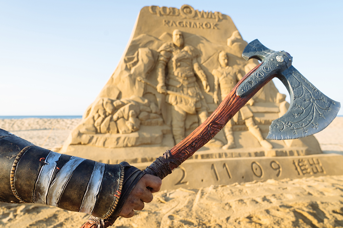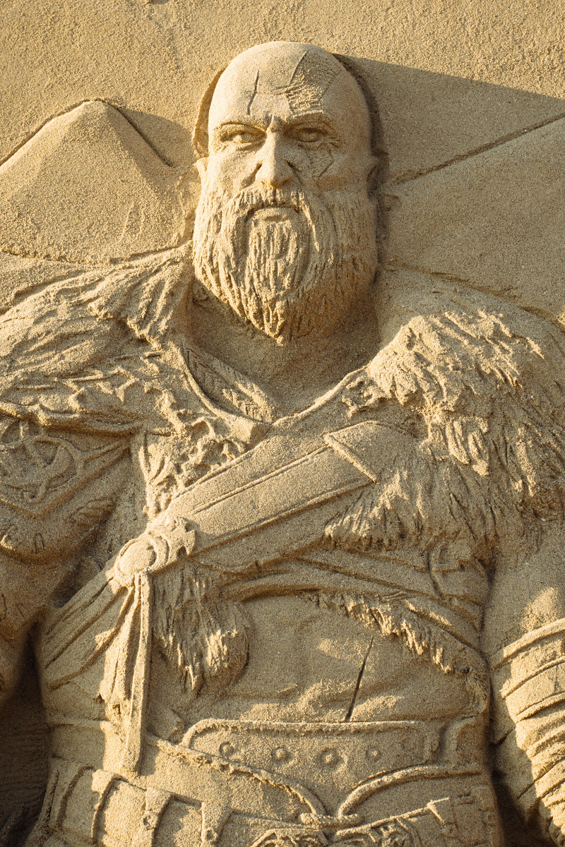 戰神:諸神黃昏》為主題打造的大型沙雕作品。