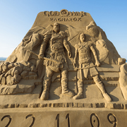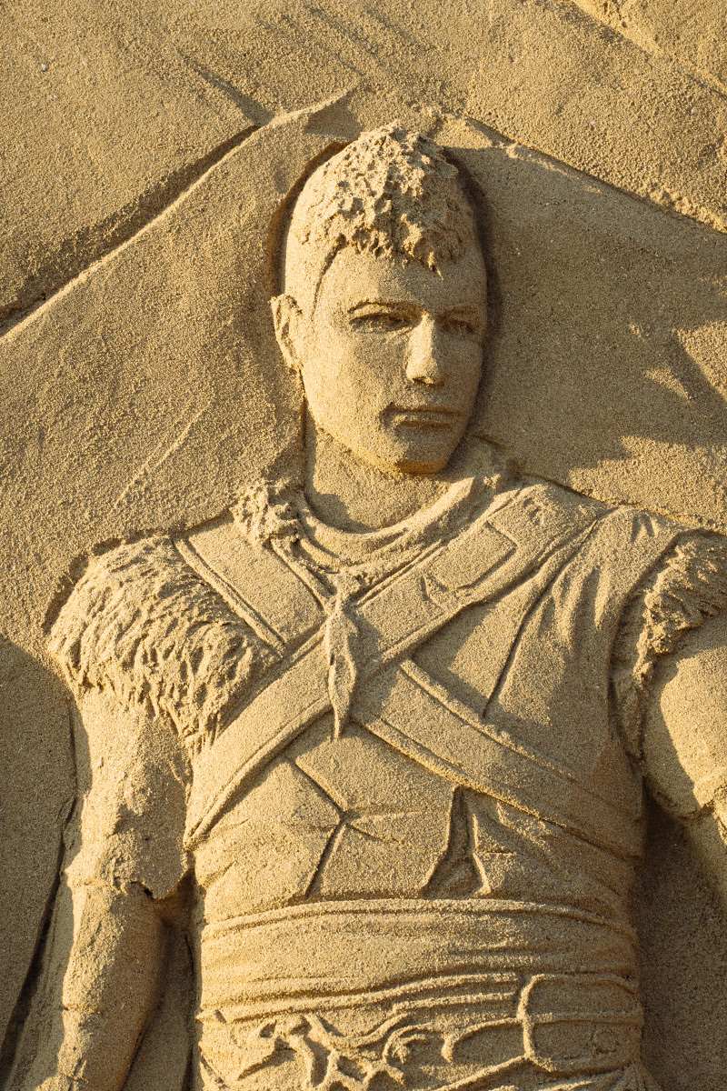 戰神:諸神黃昏》沙雕。自企劃至完成費時月餘,由福隆在地沙雕師精心製作,成品高度近 2.5 公尺,使用主角克雷多斯和阿特柔斯的全新遊戲主視覺,為即將登場的遊戲帶來更上一層的期待感!展出期間只到 10 月 10 日止。