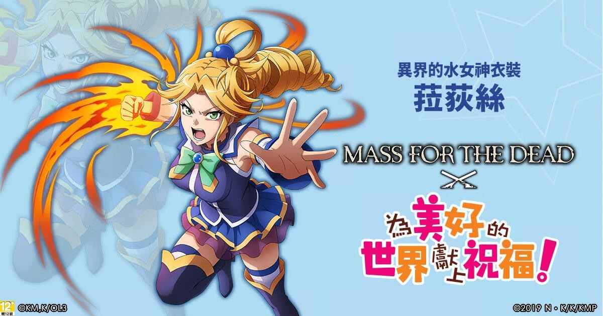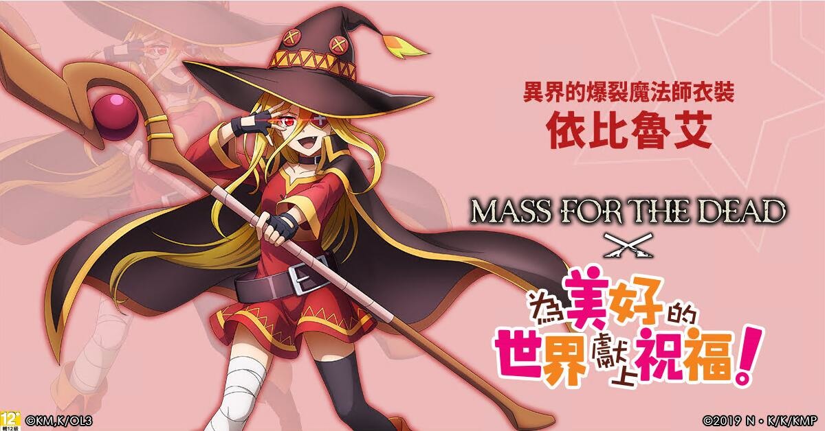 MASS FOR THE DEAD》繁體中文版,宣佈於今日(8/2)與人氣作品《為美好的世界獻上祝福》攜手合作推出聯名活動。佐藤和真、阿克婭、惠惠及達克妮絲… 等等知名動畫角色,即將出現於納薩力克地下大墳墓,一同交織豐富又有趣的原創故事,聯名活動期間,更多期間限定活動都將一一展開。