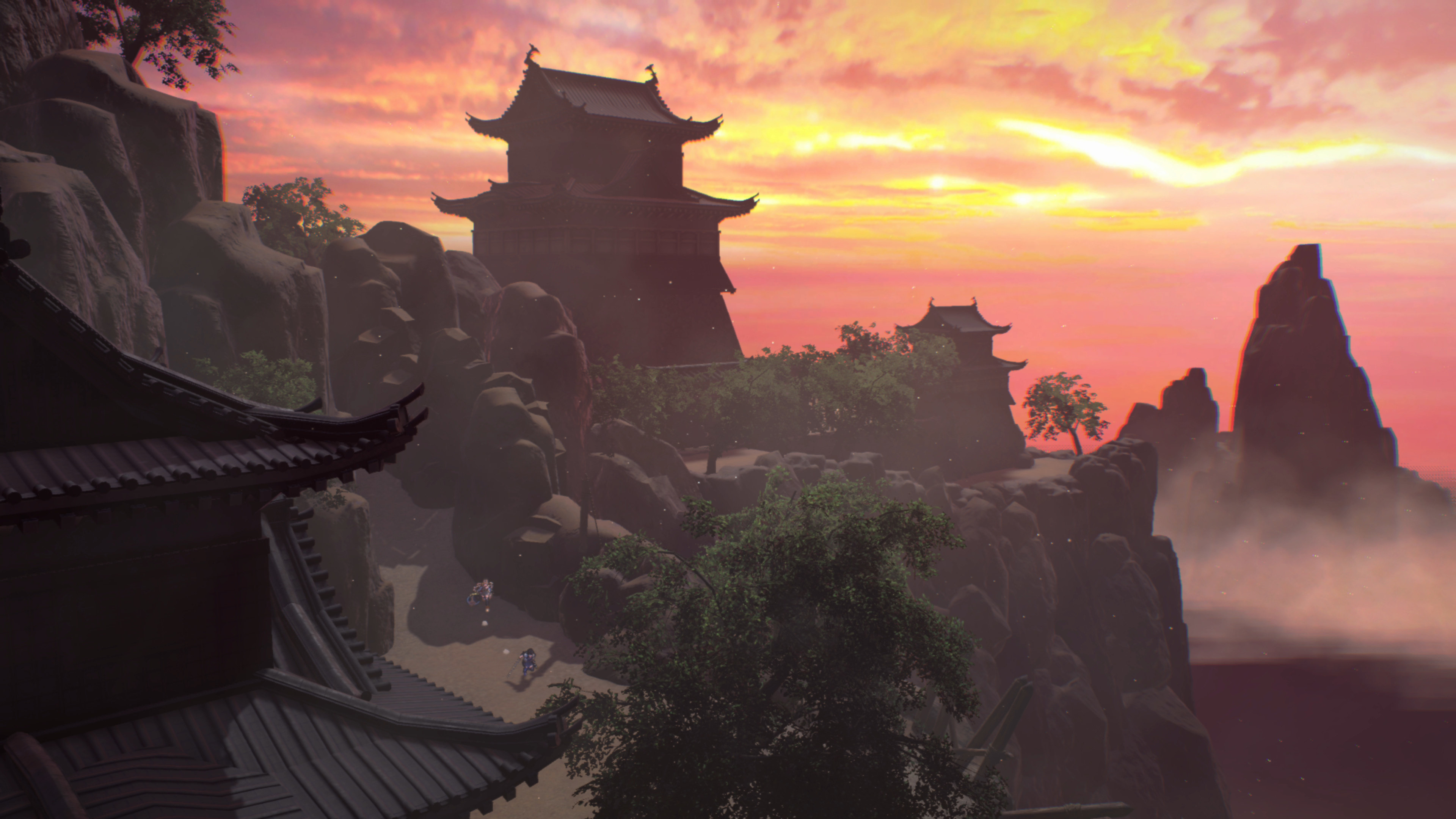 寺廟熊熊燃燒著,冒出濃烈的黑煙。