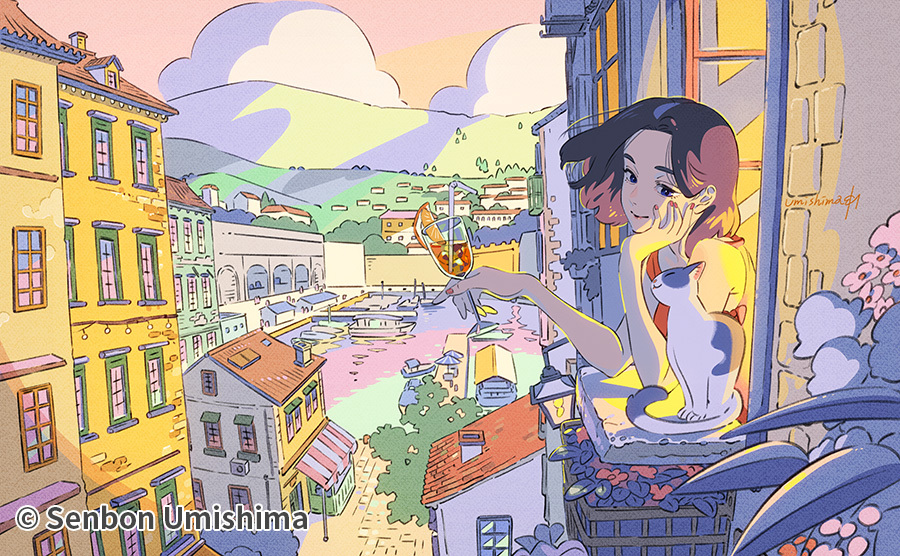 喜歡大海、島嶼、旅行還有地瓜乾。擔任過角色設計、動畫原畫與總作畫監督,現以插畫家與漫畫家進行活動,2018 年發表個人初畫集《千本の花束 海島千本作品集》,2022 年 4 月推出圖文插畫與漫畫作品集《Rooms 海島千本イラスト+コミック集》。