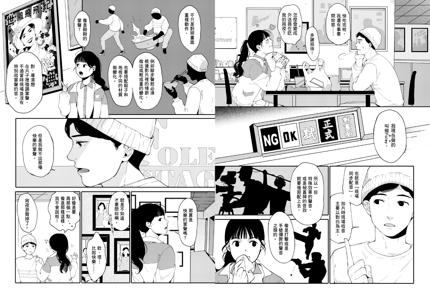 由左萱執筆的〈掌聲響起〉也很有趣。左萱是大溪人,選曲時馬上選定同為大溪人的鳳飛飛的經典歌曲,只是她的掌聲是在台下響起。「小人物獲得的掌聲跟被人全體起立鼓掌的掌聲,是很不一樣的,每個人或許都會有自己閃亮的時刻。」在她的短篇裡,主角是電影擬聲師,努力想辦法找到最適切的「掌聲」背景音,而他自己是否獲得了掌聲呢?