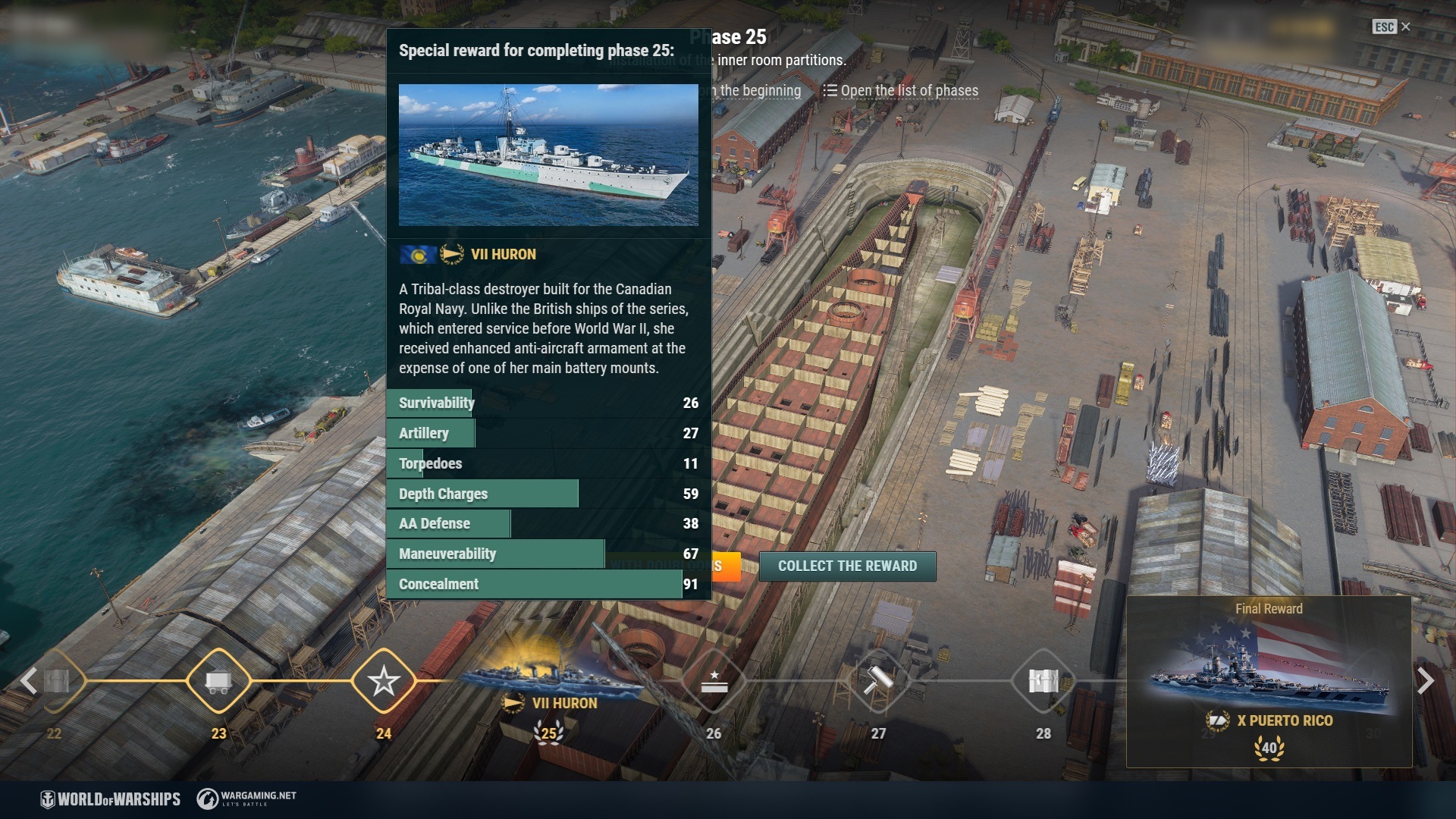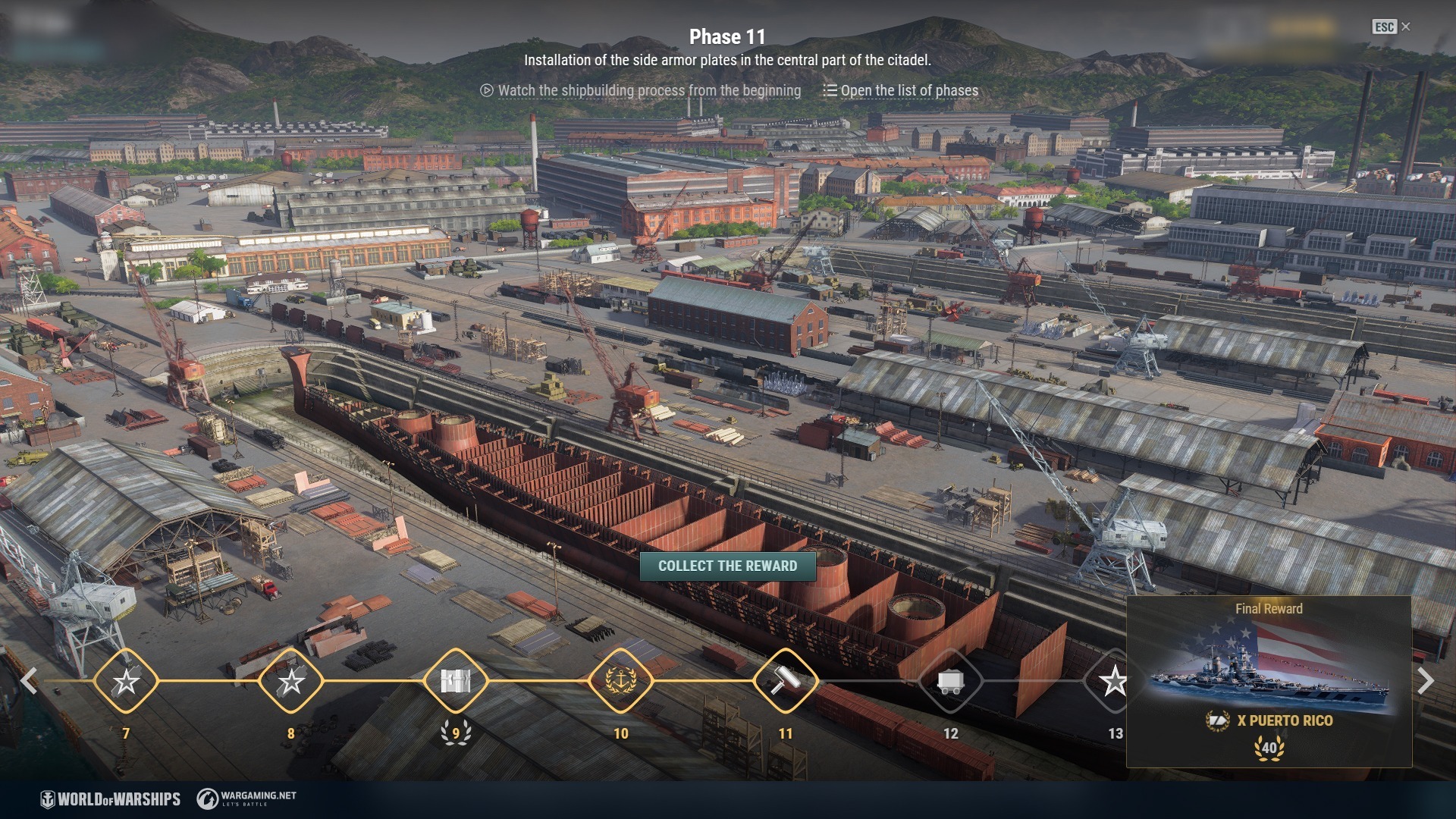 在 0.11.7 版本更新中,玩家將再度獲得機會在船塢中建造 X 階美國巡洋艦 Puerto Rico。此戰艦配備了 12 門 305 毫米火炮,分別分布於四座炮塔上,擁有厚實的血量和良好的裝甲防護。玩家可透過達成船塢的戰鬥任務,完成 34 個造船階段(總共有 40 個階段),就能獲得 X 階美國巡洋艦 Puerto Rico,附帶「儀式」永久迷彩、港口船位、帶有 10 個技能點數的指揮官,以及紀念旗幟。