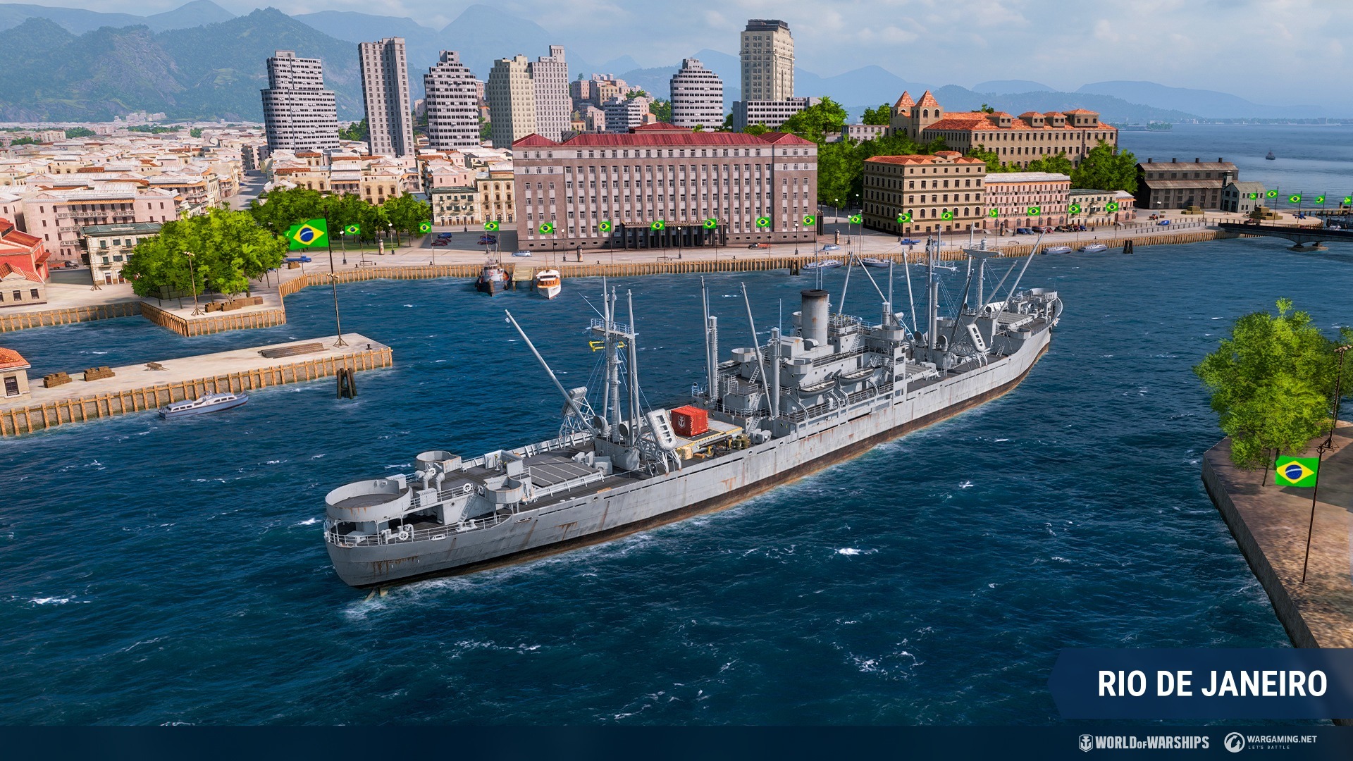 為慶祝巴西獨立 200 週年,遊戲中於里約熱內盧港新增了 V 階主力艦 Rio de Janeiro、「科帕卡巴納波浪」消耗性迷彩、「巴西獨立日」紀念旗幟以及「白天鵝」永久迷彩。此款迷彩為 V 階主力艦 Rio de Janeiro 所屬,帶有獨特的霧笛聲,為特殊戰鬥任務系列的最終完成獎勵。