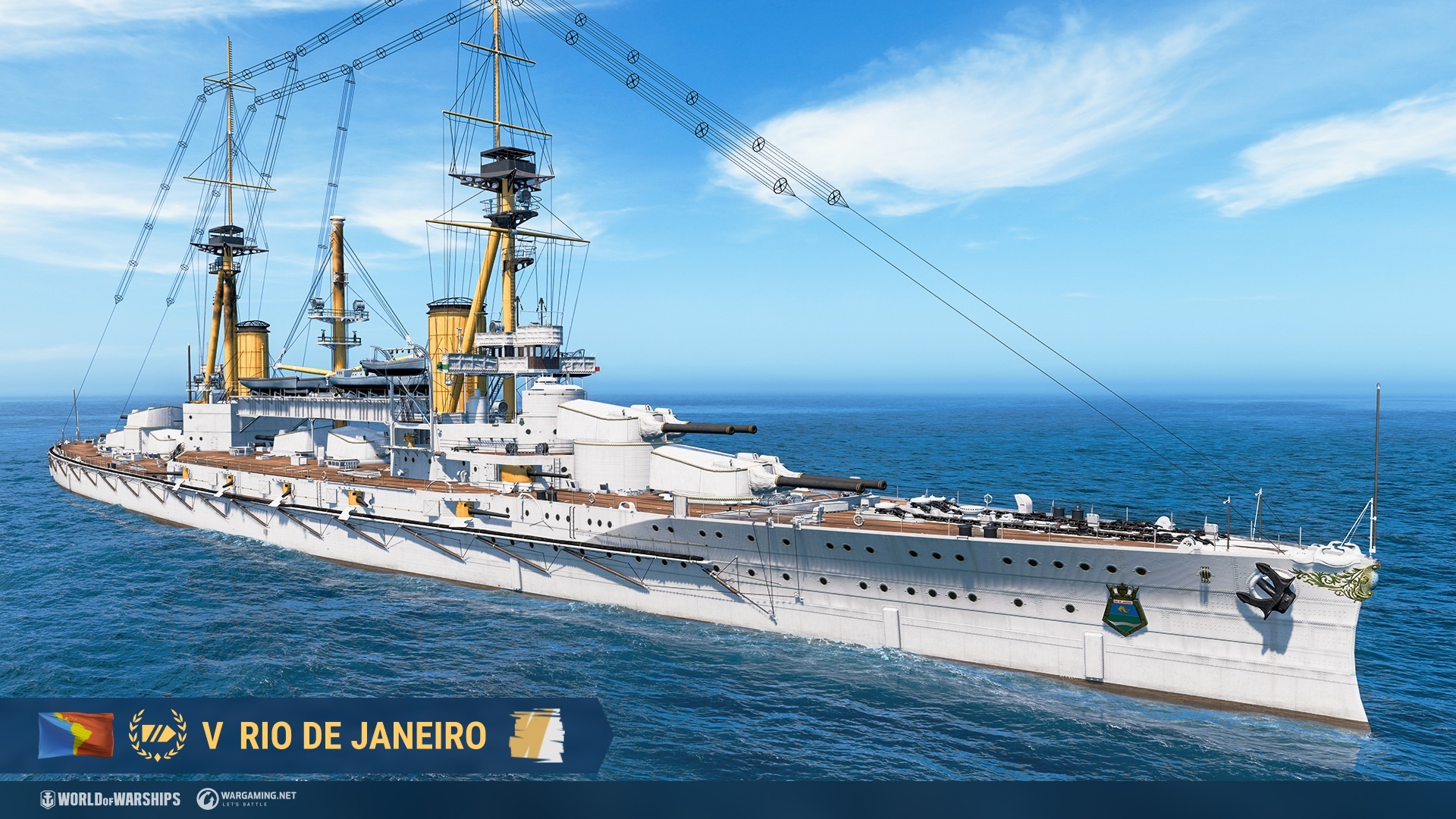 V 階 Rio de Janeiro 這艘無畏主力艦擁有七座炮塔。此戰艦裝備有十四門 305 毫米主炮,準度良好且齊射威力強大。其 HE 彈能造成高傷害,並具有良好的裝甲穿透能力和起火機率。但是其 AP 彈與同階大多數主力艦來得較弱。此艦艇的血量不錯,但航速較慢且缺乏對空防禦。