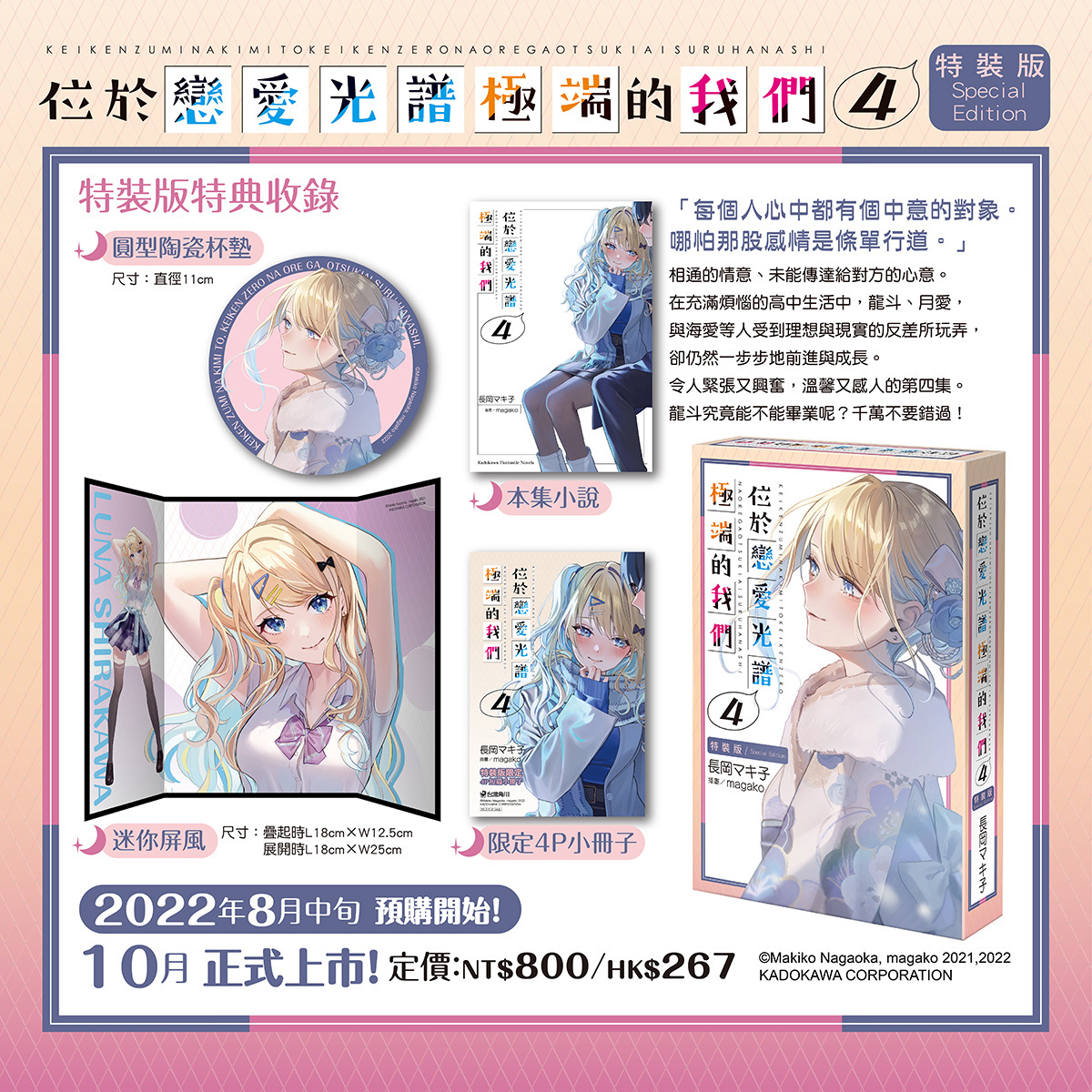 位於戀愛光譜極端的我們》將於 2022 高雄動漫節首賣第 4 集特裝版,並開放限時兩週事前預購,預購時間至 8/30(二)為止。