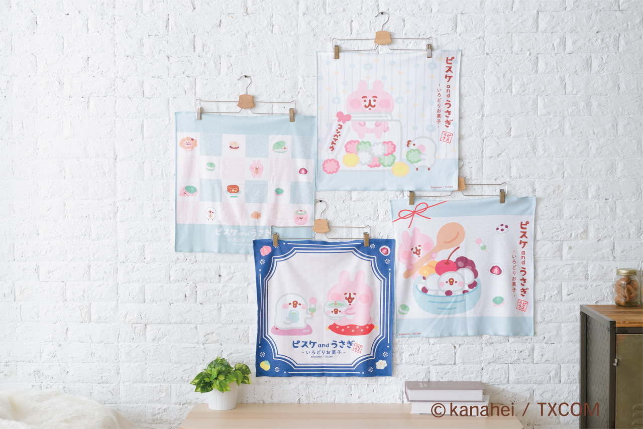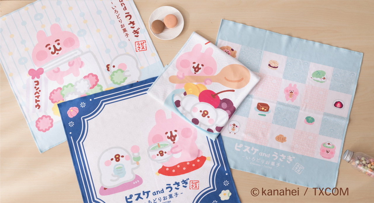 「卡娜赫拉的小動物幸福和菓堂」推出超過 30 款全新和菓子系列週邊,各式日式點心的市松款、夏日應景冰菓款,還有熱鬧茶會款的「卡娜赫拉的小動物和菓子門簾」。「卡娜赫拉的小動物和菓子方巾」P 助與兔兔變身多款和菓子甜點圖樣;「卡娜赫拉的小動物和菓子馬克杯」P 助與粉紅兔兔變身成冰菓、糖果罐等 4 款超可愛圖案登場。