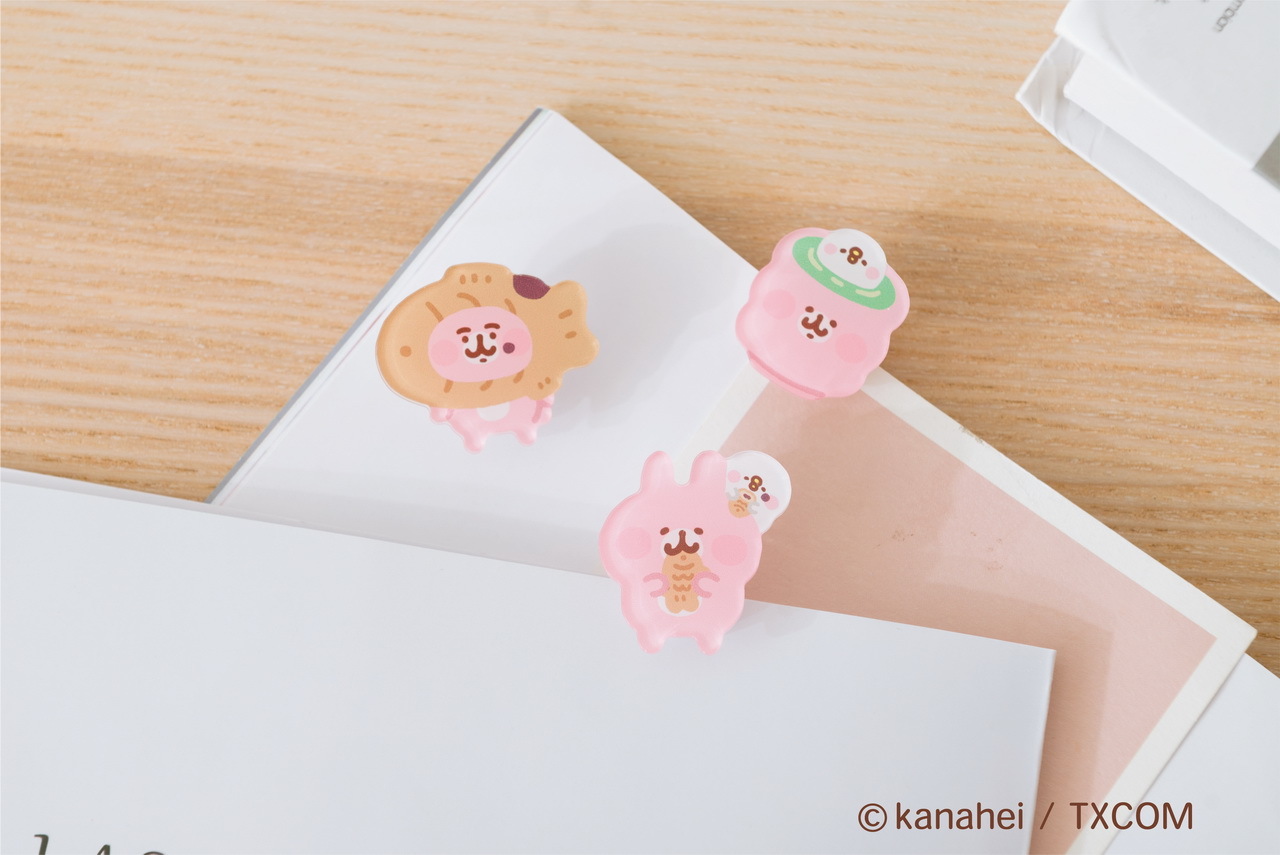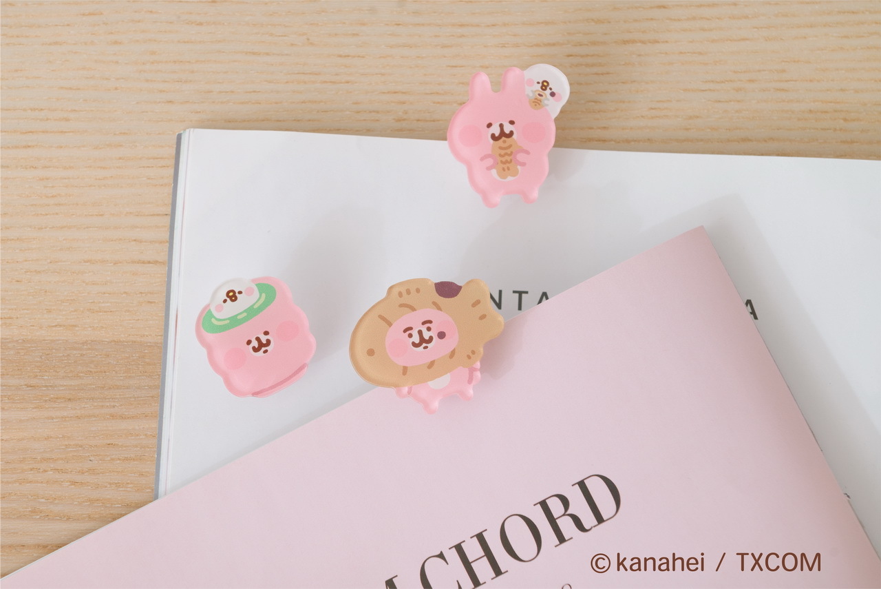 本次也推出上班族粉絲專屬的限定新品,有「卡娜赫拉的小動物和菓子玩偶護腕」;「卡娜赫拉的小動物和菓子造型夾 3 入組」有戴著鯛魚燒頭套的粉紅兔兔、化身成茶杯裝著糰子 P 助的粉紅兔兔,還有一起吃鯛魚燒的小動物 3 款造型;還有「卡娜赫拉的小動物和菓子吸管杯」。