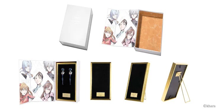 本次推出的角色形象飾品包括有真嗣、零、明日香、渚薰、真希波,五款不同的耳環的花紋設計皆不同,每款商品也會有特殊的包裝盒以及展示用的相框,商品含稅定價為 2 萬 1780 日圓,提供給有興趣的人參考。
