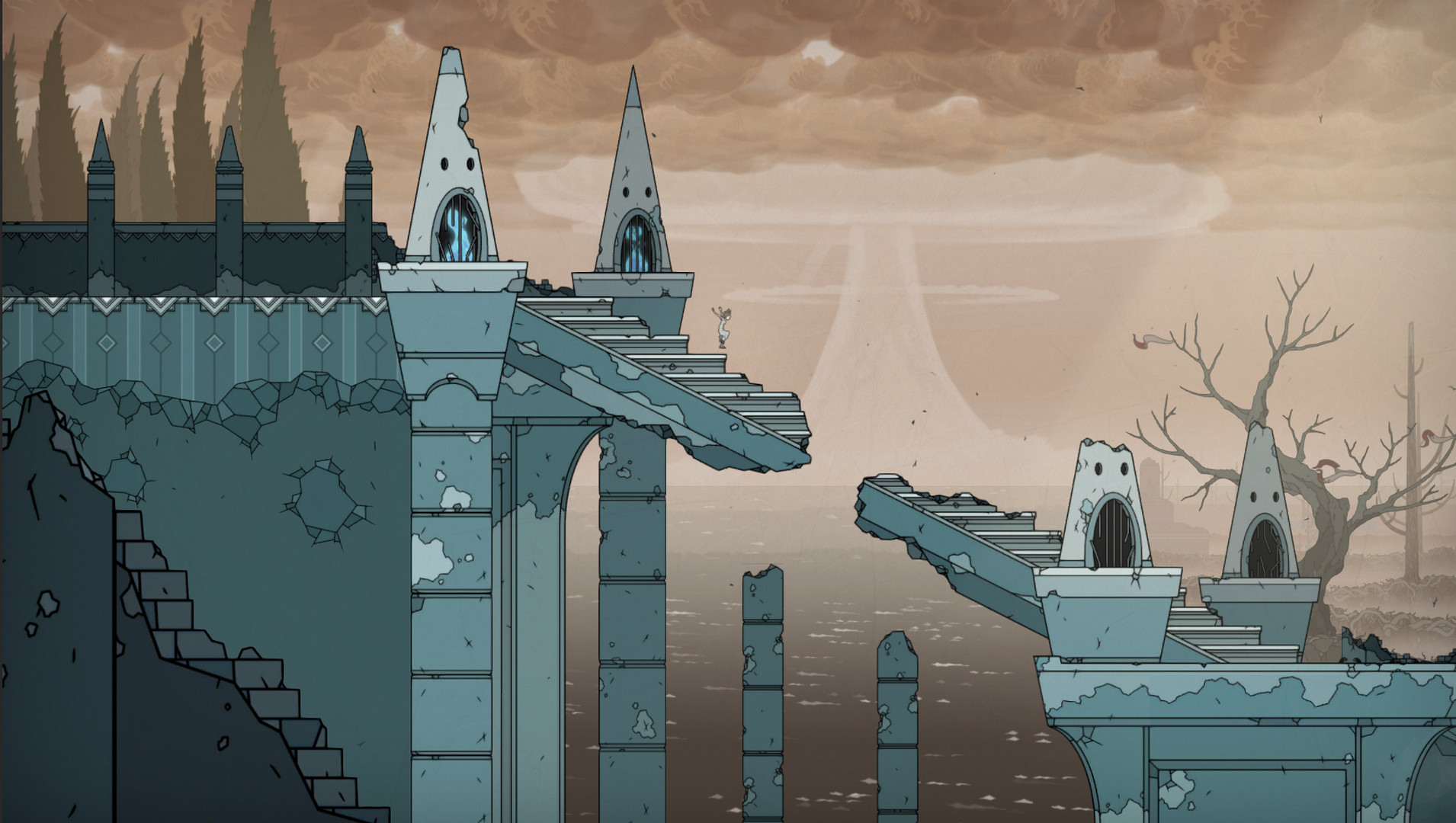 破滅》是一款暗黑風幻想平台動作遊戲,玩家需要操控兩名截然不同的角色,竭盡全力逃出人稱「微笑群島」的詛咒之地。遊戲中玩家將幫助這個既脆弱又狂野不羈的「天淵之子」一路探索、解決謎題,您必須在危機四伏的古老遺跡內披荊斬棘,方能揭開群島的秘密。另外,玩家還將成為崇尚暴力的蒙面化身「救主」,其天職就是保護孩子不受救主之地上那些怪誕群魔和邪惡頭目的侵害。