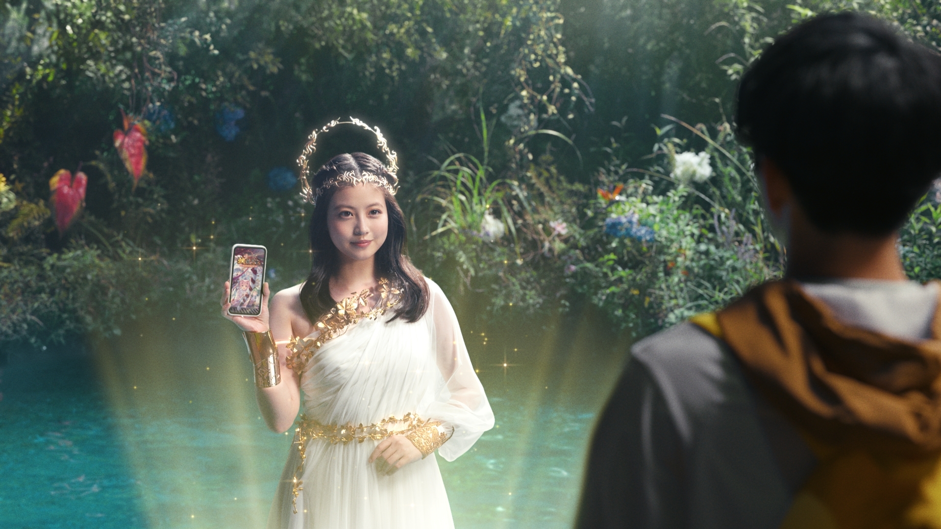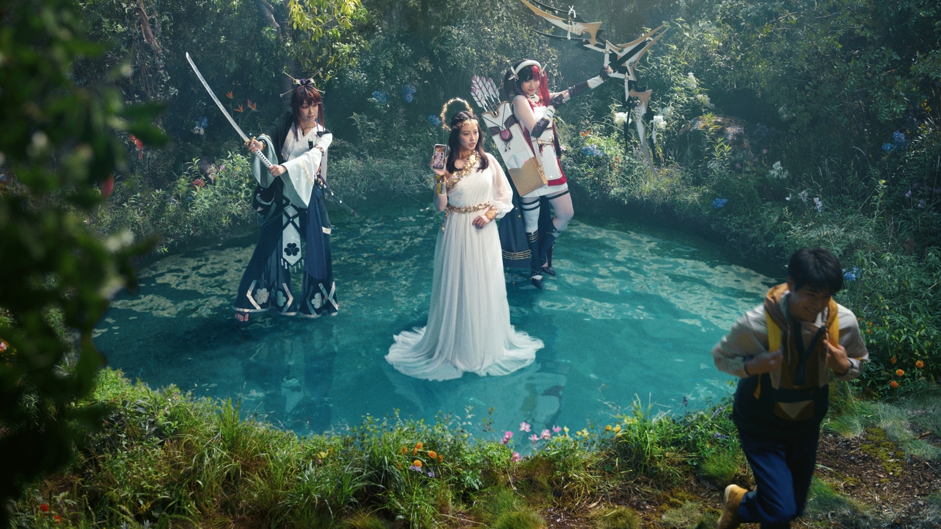 在 TV CM 中,可以看到官方邀請到今田美櫻飾演「湖中女神」在影片中登場,與不小心於湖中掉落智慧型手機的男子展開問答以及後續一連串奇異的發展。