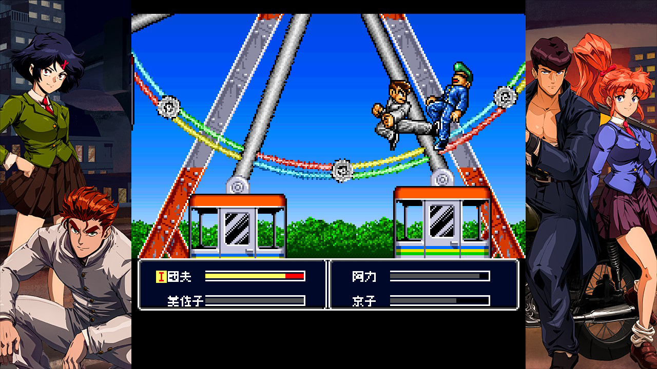 熱血硬派國夫君外傳 熱血少女》裡,大家熟悉的主角四人組「國夫」、「阿力」、「美佐子」和「京子」作為可遊玩角色登場,還增加了改善的角色設計、開場影片和儲存功能等新元素,可以體驗到品質提升後的遊戲。