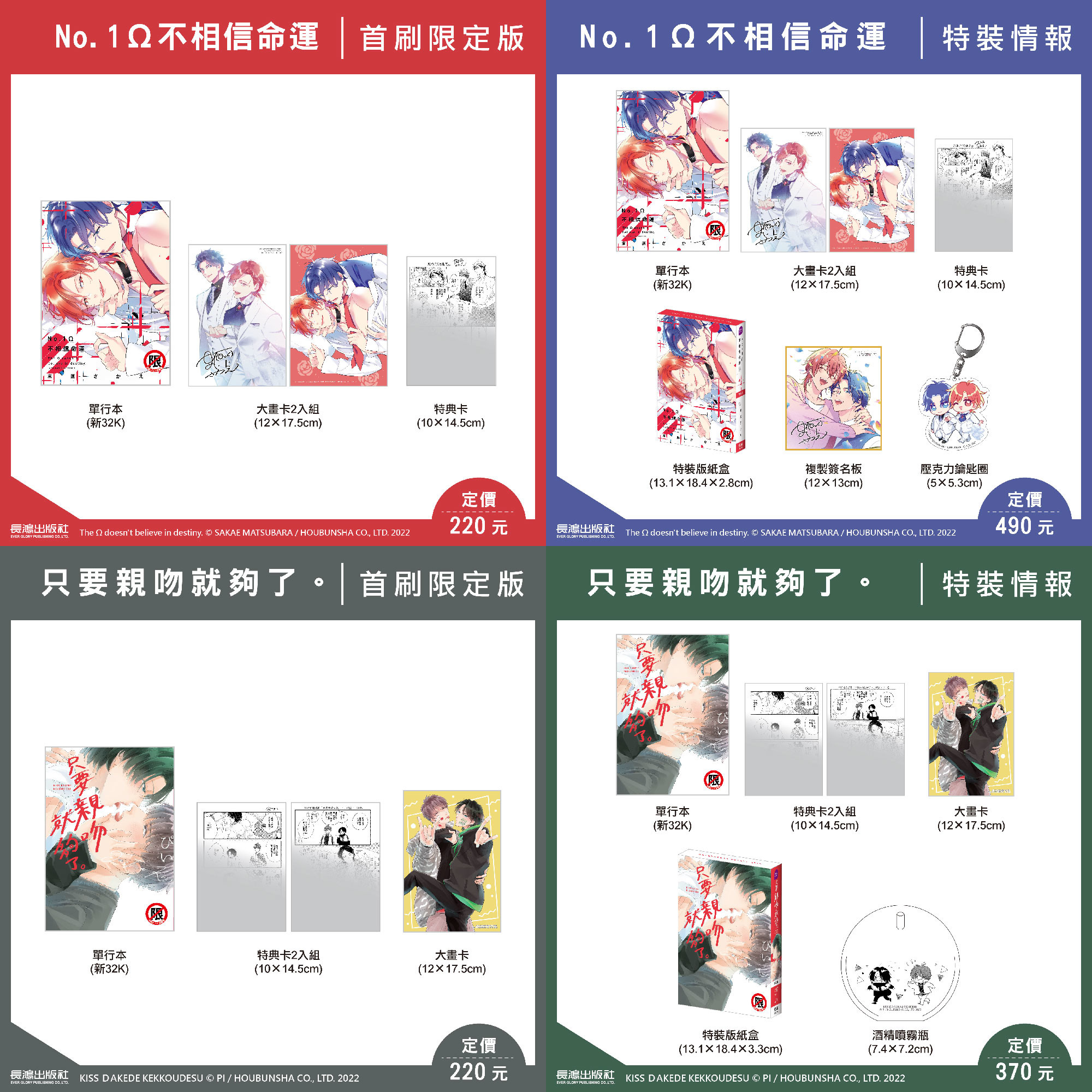α恐懼症的α×高傲的風俗店Ω,從假的伴侶契約開始,不是命運的戀愛♥末原さかえ《No.1Ω不相信命運》特裝版內含單行本+首刷限定版大畫卡2入組+首刷限定版特典卡+複製簽名板+壓克力鑰匙圈。