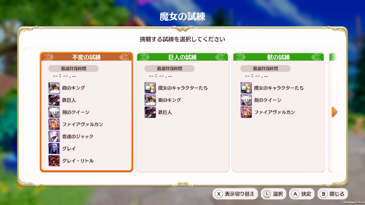 遊戲通關後,將會開放能夠強敵們連續戰鬥的「魔女的試煉」。挑戰途中也能在隨機陳列道具的商店中進行購物,是可盡情享受 Roguelite 要素的 Boss Rush 模式。