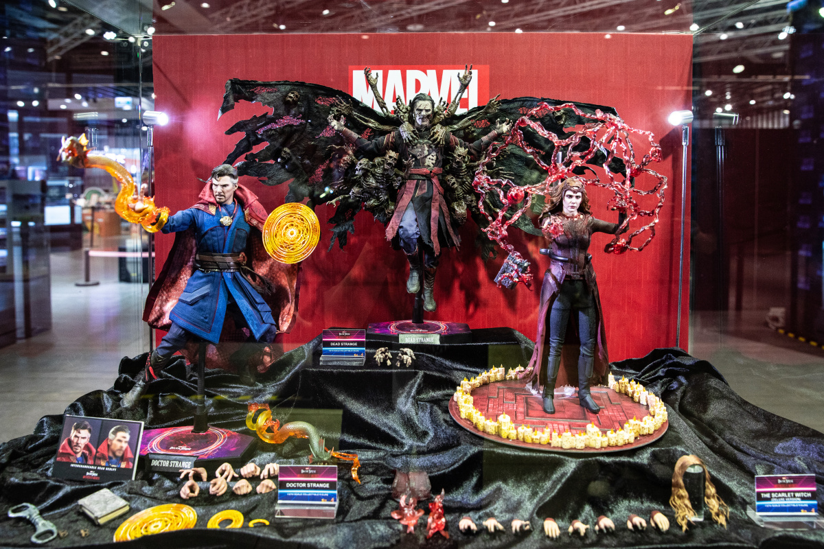 由《蜘蛛人:無家日》中的奇異博士設定為基礎,以手工細部雕塑的真人比例 1:1 雕像領軍,帶來一系漫威宇宙擬真的超級英雄 1/6 比例珍藏人偶作品,除了去年《蜘蛛人:無家日》系列中的「三代同堂」經典畫面外,還有在片中出現的多套蜘蛛人戰服與多重宇宙中扮演重要角色的奇異博士一併展出,此外,現場也首次展示近期的另一部漫威電影《奇異博士 2:失控多重宇宙》中主角奇異博士、與黑化的緋紅女巫,此作品系列中照片一曝光即獲得極高討論度的活死人奇異博士也同樣在現場展示;而去年登台的迪士尼影音串流服務 Disney+ 中的獨家漫威作品於本次展覽也同樣展示出多款實體收藏,其包含《月光騎士》的月光騎士、《假如…? 》中的卡特隊長、九頭蛇重踏者、殭屍獵人蜘蛛人、以及還沒有落實預售日期的帝查拉星爵。