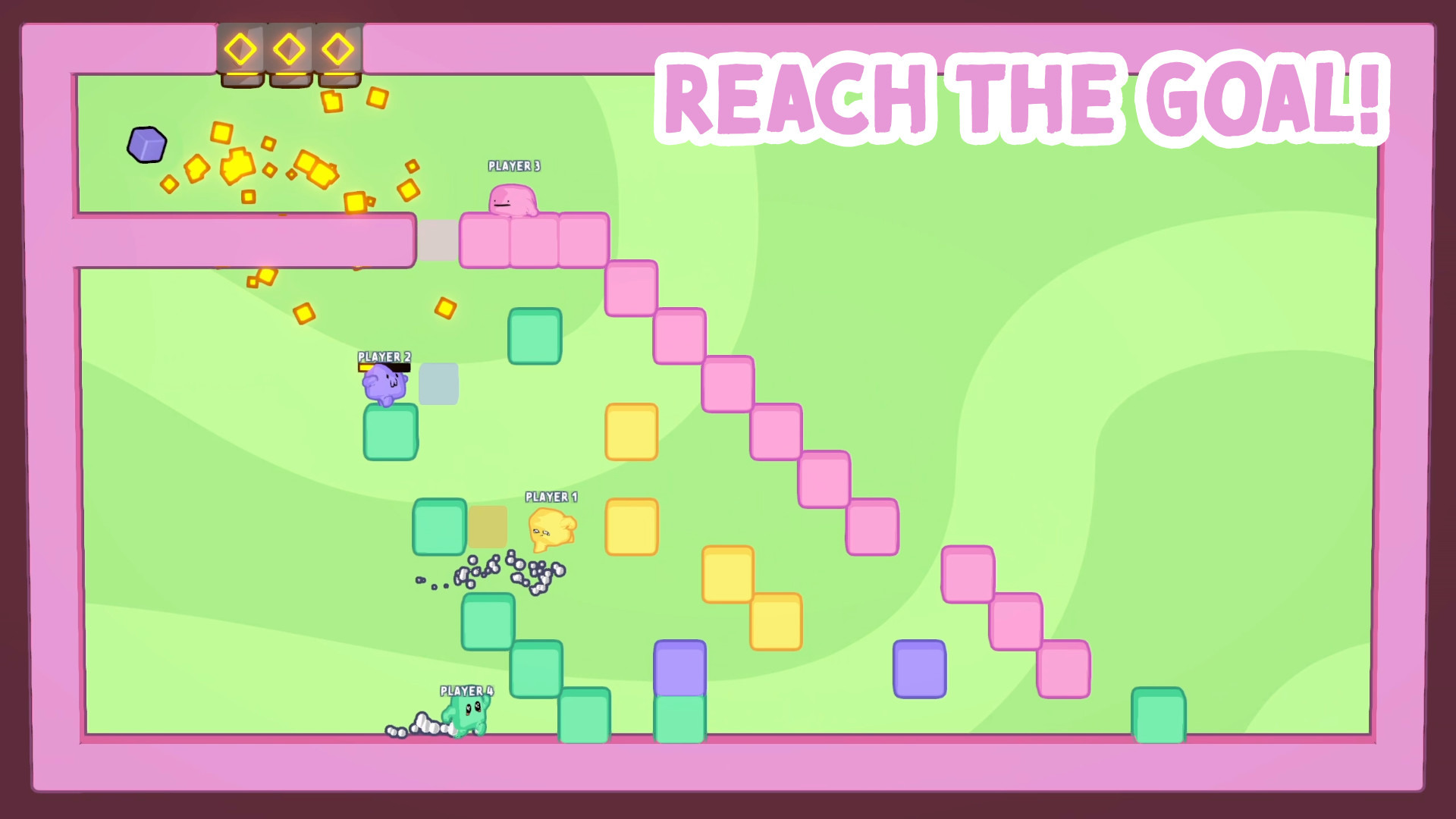遊戲中,玩家將操控不同種顏色的方塊,並運用擺放、消除方塊等方式來通過各種地形、讓人從高處落下、或是封住對手等,來讓自己順利到達目的地。