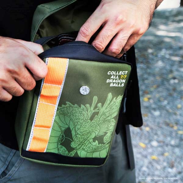 除此之外,還有出門必備的斜背小包,共有綠色神龍款及黑色悟空款,不管是要裝手機、鑰匙、錢包都非常方便,可以再搭配上小巧又精緻的超魔方吊飾,不僅有七顆龍珠中最重要的四星球,還有悟空或達爾的