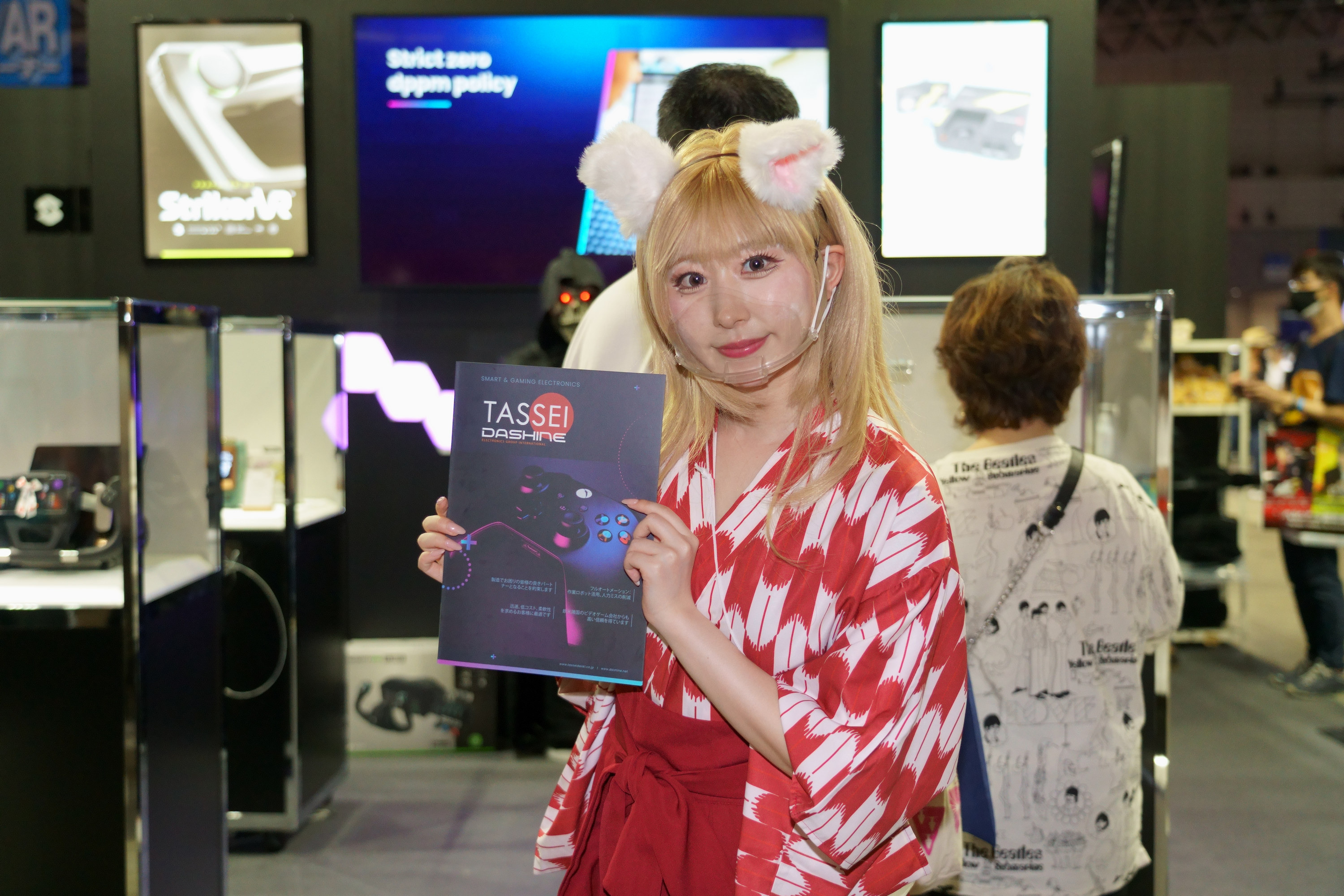 以往吸睛的展場女郎 Show Girl 人數大幅減少,加上因為防疫考量,所以基本上都會戴上口罩,不復往年讓人目不暇給的花枝招展演出。編輯幾天跑展下來,印象最深刻的莫過於 SEGA 攤位上裝扮成新選組的《