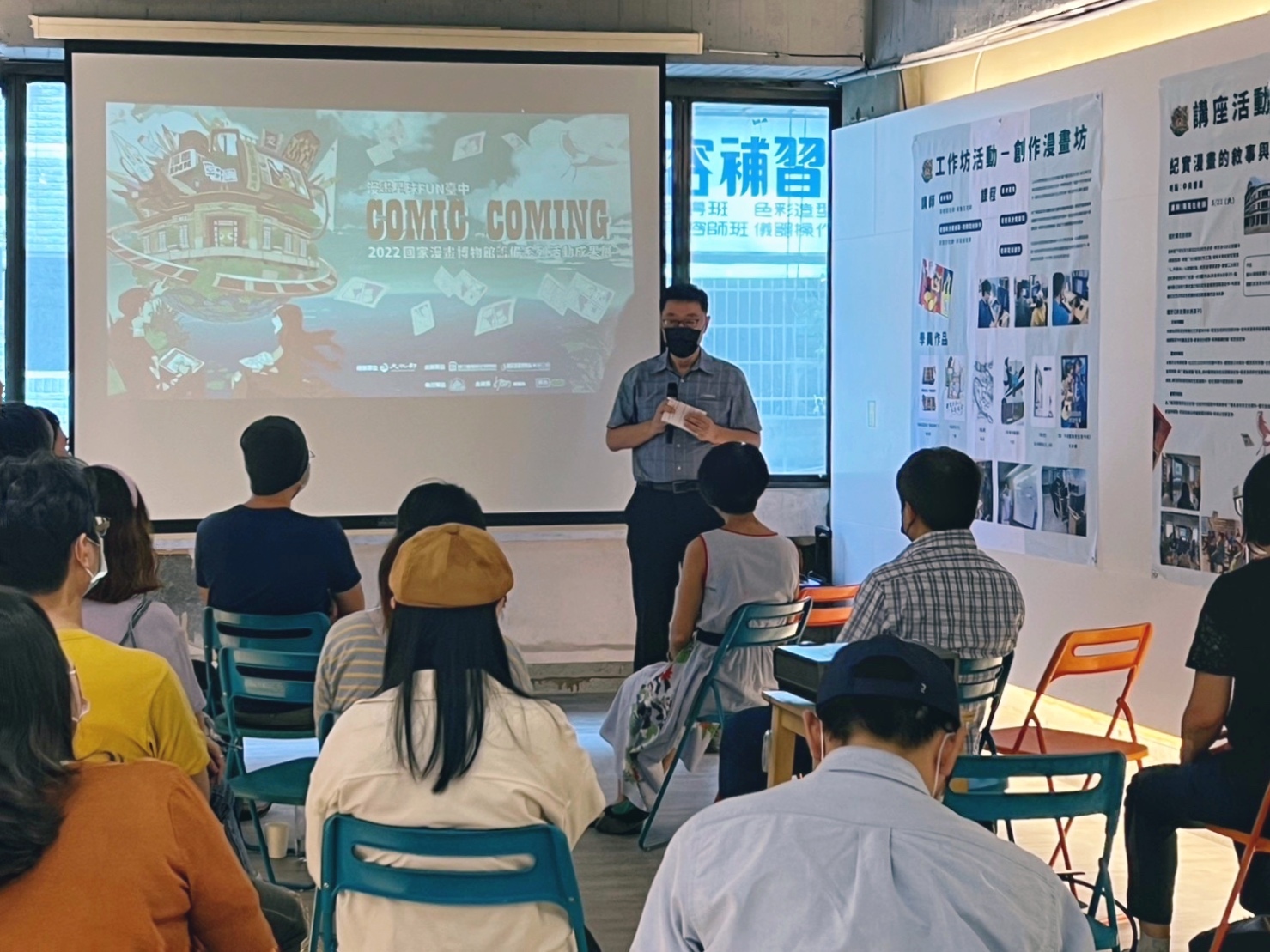 未來國家漫畫博物館的選址地規劃在臺中,為了與在地互動並推廣臺灣漫畫文化,國立臺灣歷史博物館於 10 月 1 日起至 10 月 23 日推出「Comic Coming 漫畫星球 FUN 臺中-2022 國家漫畫博物館籌備系列活動成果展」,展出今(111)年上半年舉辦的系列活動集錦,包括選址地周圍走讀、漫畫講座及漫畫教學工作坊,並進一步與臺中舊城區在地店家合作,展出工作坊學員的短漫作品。