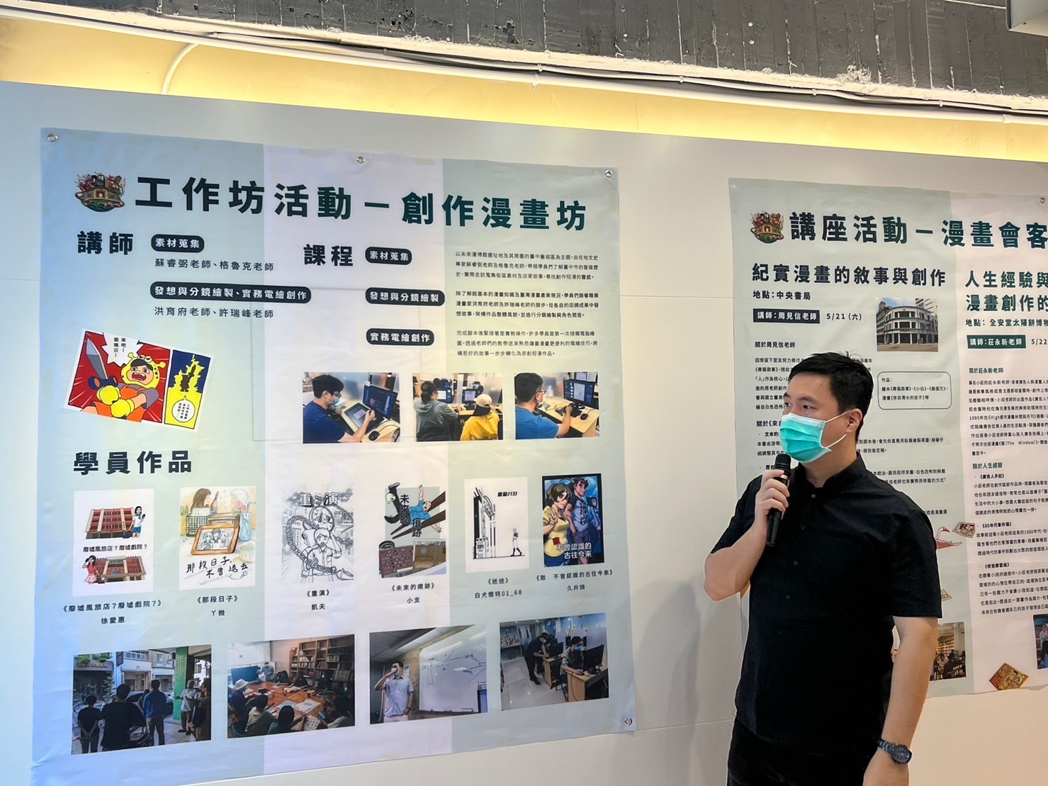 於日前舉辦的成果展開幕茶會,邀請參加系列活動的講師、學員以及在地店家與會交流。執行單位中城再生文化協會祕書長陳冬梅代表致詞,歡迎各界朋友到訪參觀成果展,表示很開心能以漫畫的形式讓大家認識臺中舊城區的故事,期待未來能有更多機會持續與漫博籌備團隊合作。國立臺灣歷史博物館館長張隆志表示,目前國家漫畫博物館的軟體籌備工作由文化部委託臺史博進行,感謝各界對漫博館籌備的支持及鼓勵,本次系列活動與成果展是籌備工作中,與選址地周圍在地互動上重要的一塊,未來也將繼續推廣臺灣漫畫文化。