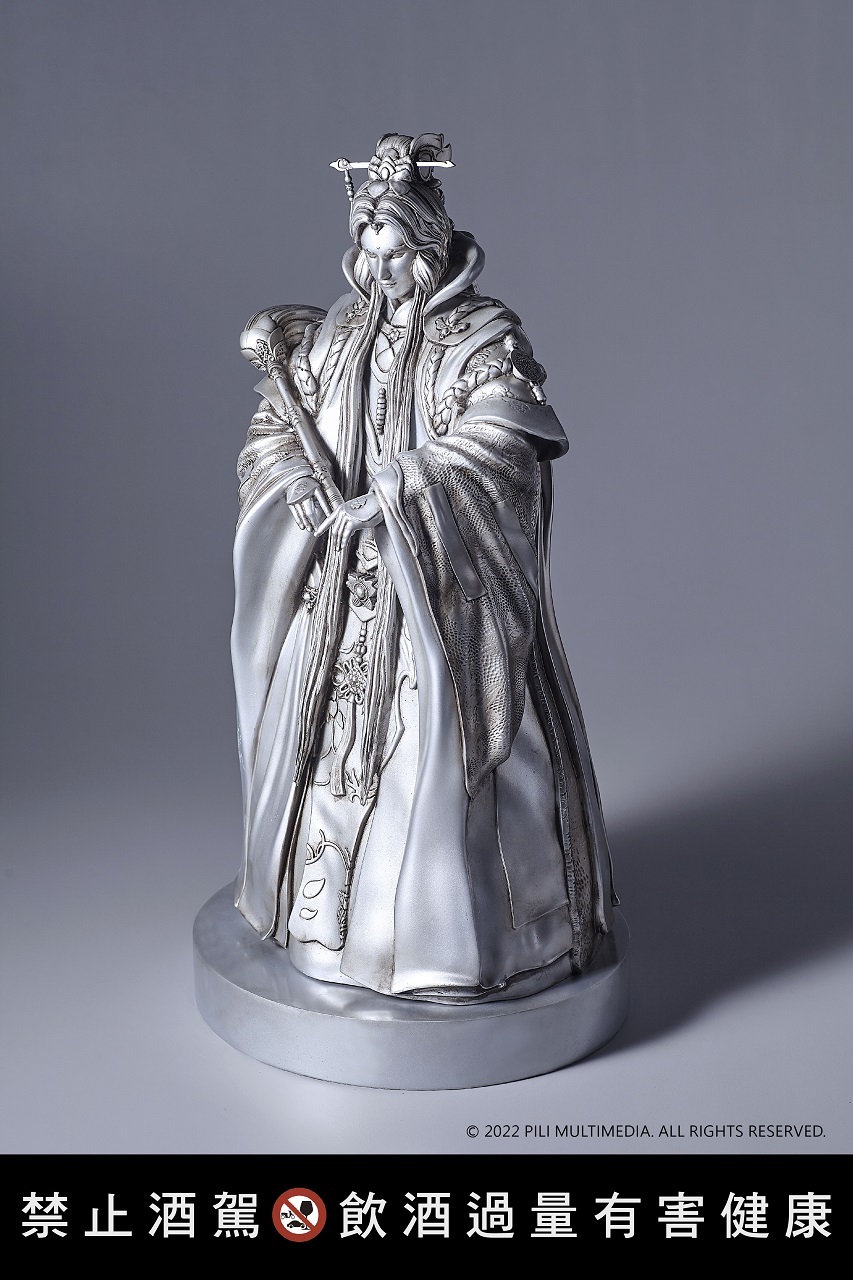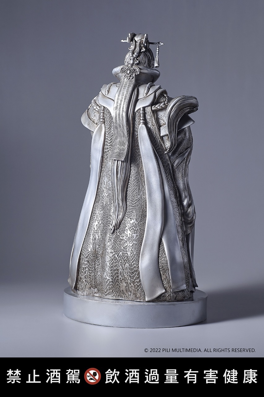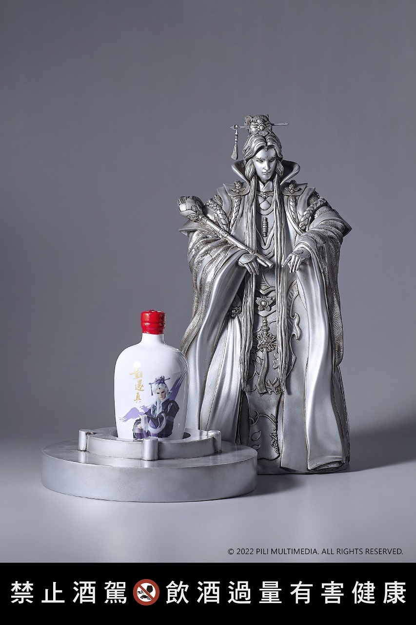 另高達60公分手持拂塵的銀色素還真藝品,與虎尾圓環高達六公尺的銀色素還真裝置雕像相呼應,精緻仿真還原素還真立體造型,整體視覺強調雕塑精緻的輪廓細節與樣貌,同樣搭配金門酒廠經典 58 度高粱酒。