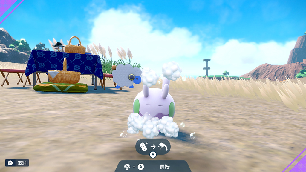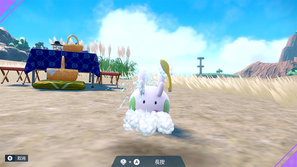 開始野餐後,同行寶可夢以及一起冒險的傳說的寶可夢故勒頓/密勒頓就會齊聚在場地上。