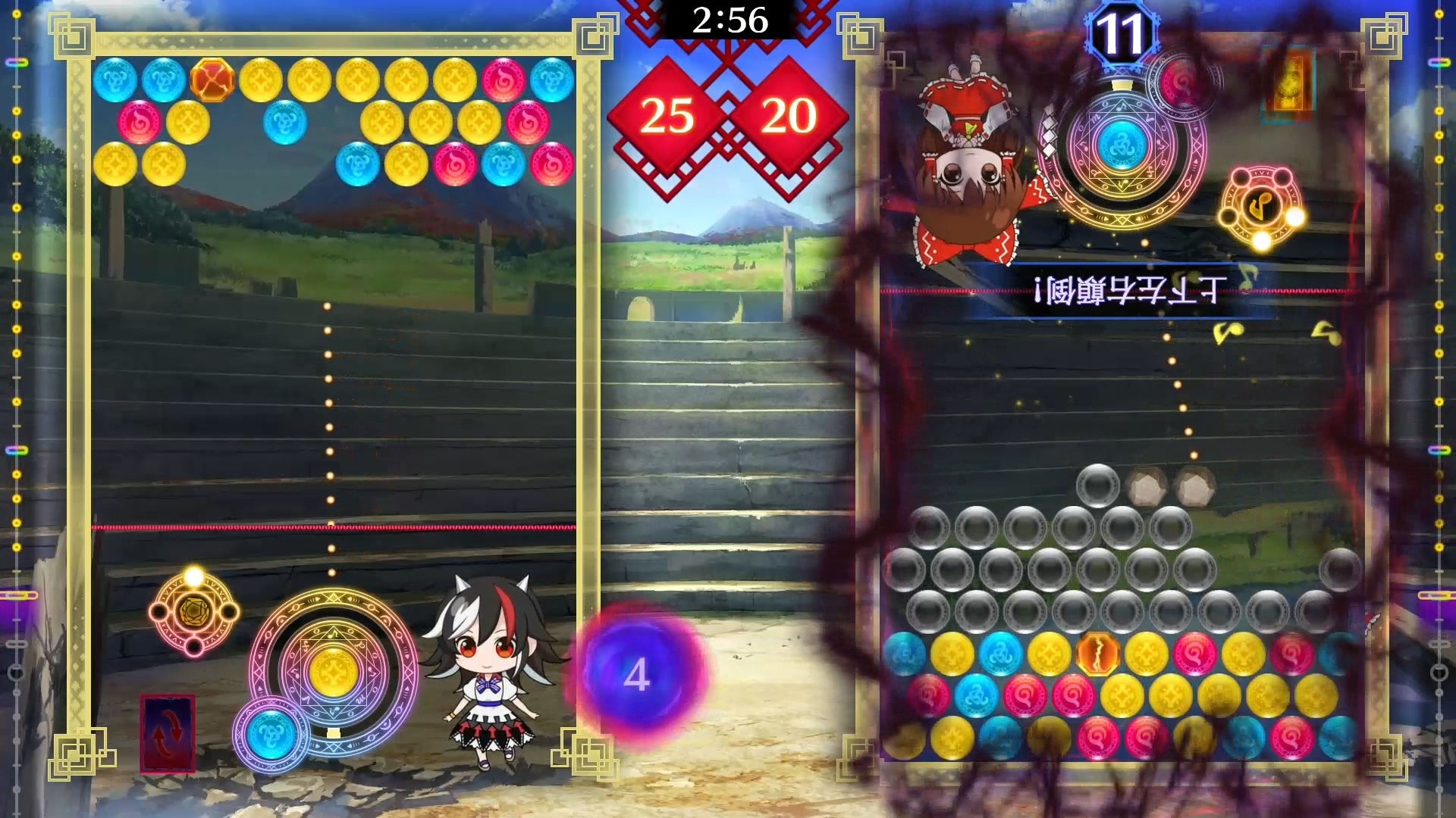 東方咒術泡泡》的「線上對戰」功能已透過免費的大型更新增加,可以與其他玩家一起在網路環境中進行排名配對和個人配對兩種新對戰模式。與此同時,還增加了可以確認排名賽戰績等的「排名配對實績」和可以設定外號的「稱號」以及挑戰關卡的計分排名功能,可以與其他玩家較勁自己的實力。