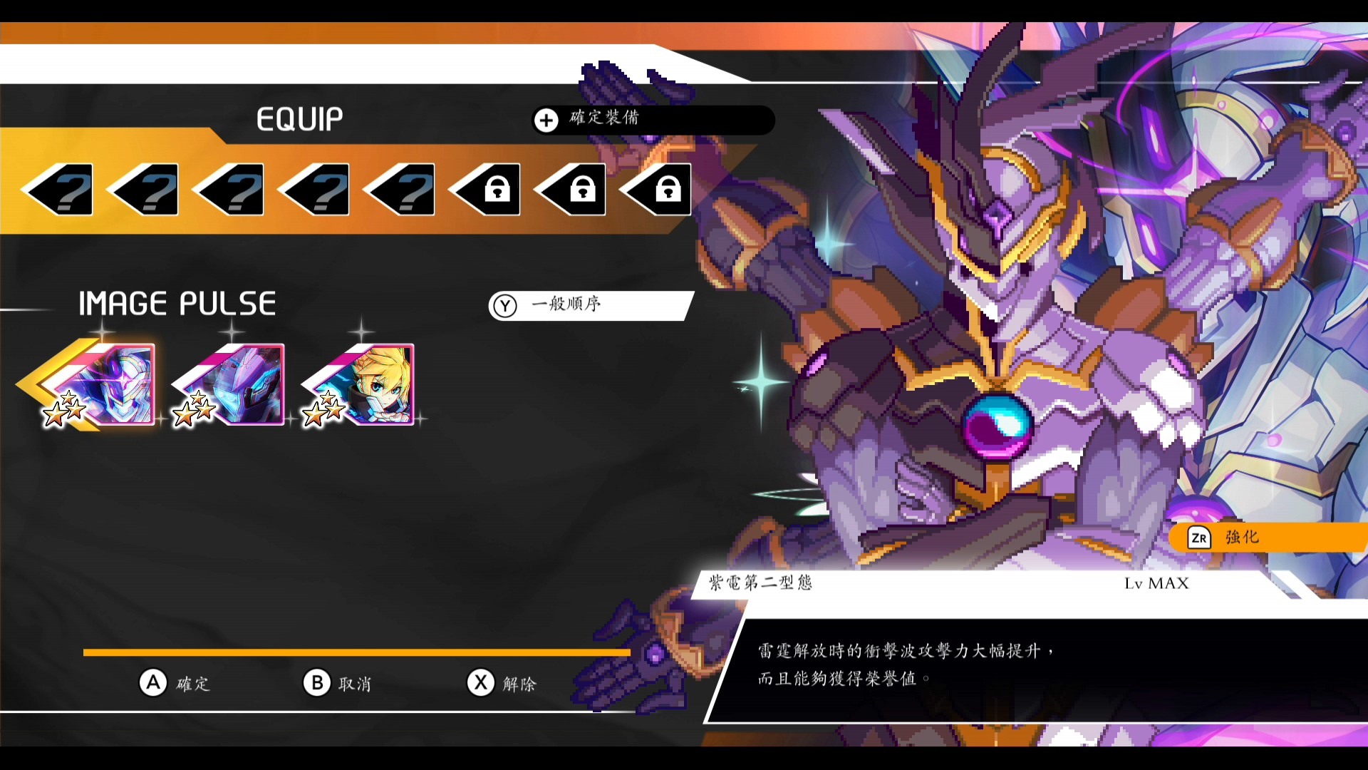 蒼藍雷霆 GUNVOLT》中登場之「高天的支配者(Babel Master)」紫電的 4 種技能型印象脈衝,以及《