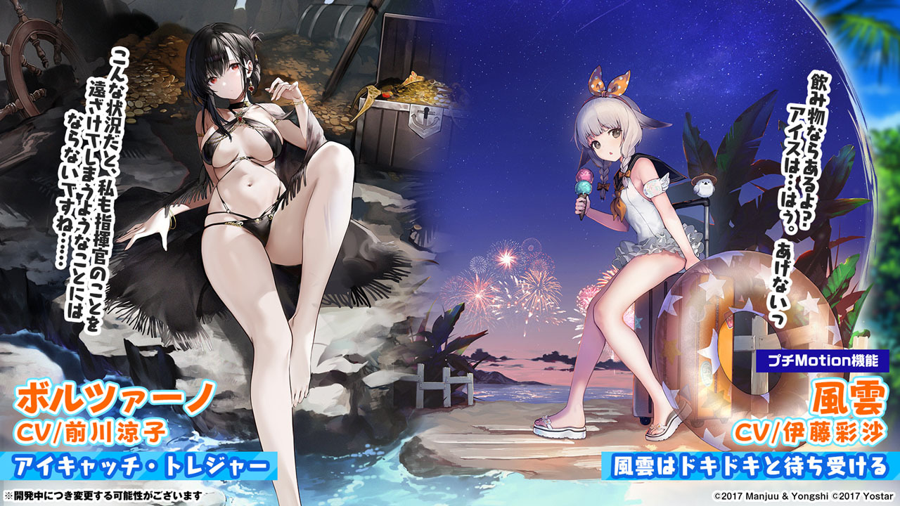 於此同時,包含 UR 航空母艦 “約克鎮 II”(CV:優木かな)、SSR 航空母艦“大黃蜂 II”(CV:山本希望)、SSR 重巡洋艦 “北安普頓 II”(CV:小泉喬生)、SR 驅逐艦 “哈曼 II”(CV:伊藤あすか)、SR 輕型航空母艦“ 蘭利 II”(CV:佳村はるか)等新船艦將實裝。