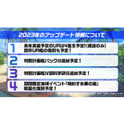 此外,官方也一併 2023 年的更新情報,計畫於 2023 年實施 4 艘 UR 艦船(僅限於建造)預定,現存的 UR 艦船也將預定會復刻。另外,期間限定活動「破曉冰華(暁射す氷華の嵐)」也預定以輕量化之姿復刻。