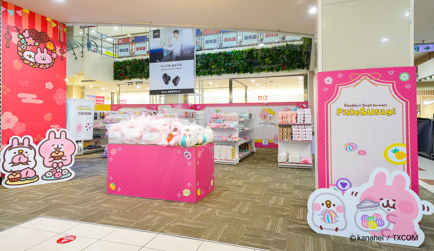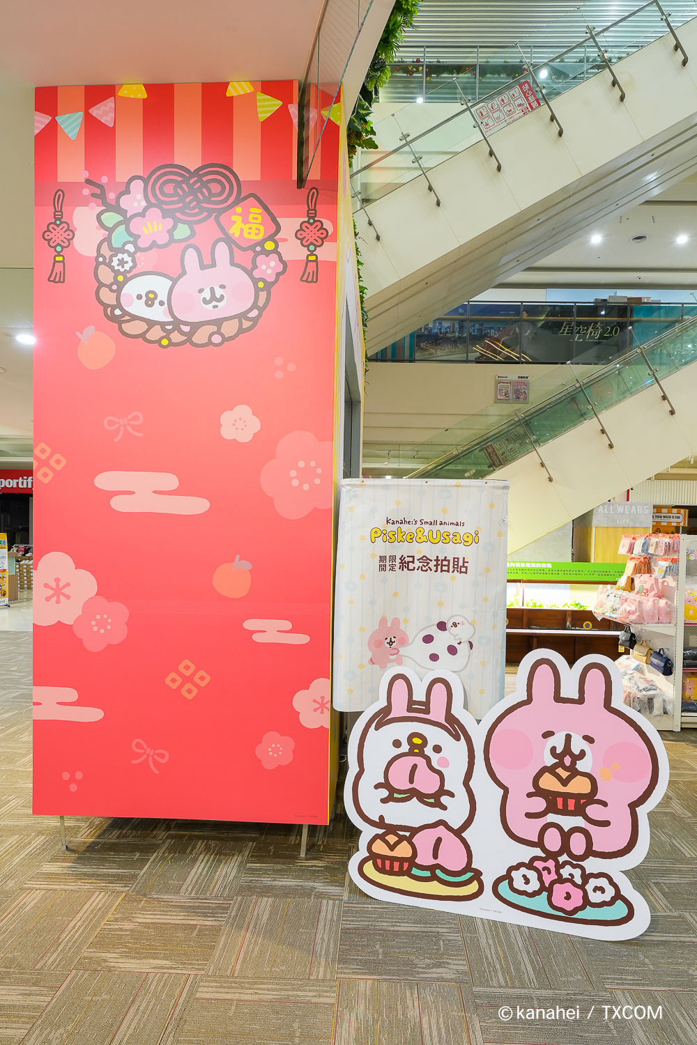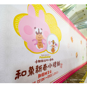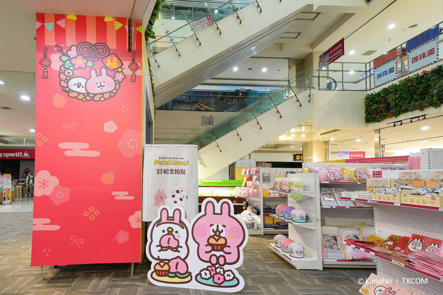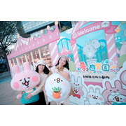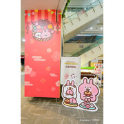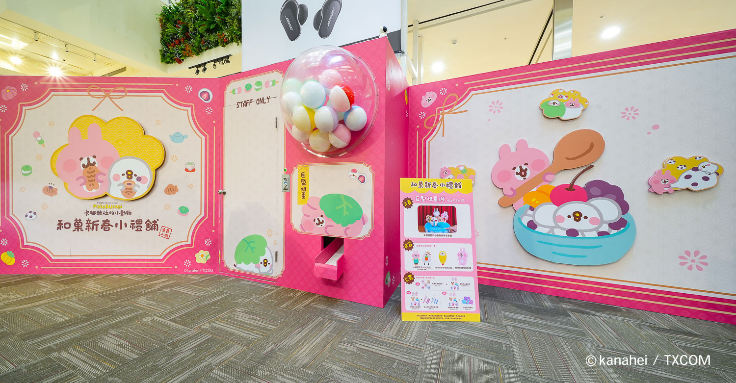 而在環球購物中心新北中和登場的「卡娜赫拉的小動物-和菓新春小禮舖」,這次還推出「卡娜赫拉的小動物造型接駁車」,並且推出了 3 大新春打卡點讓粉絲體驗新春兔年氛圍。首先是店外超過 10 米寬「兔年夢幻美食牆」合影,再穿越琳瑯滿目商售區到店內,與掛著粉紅兔兔注連繩的「新春打卡牆」及吃著點心的小動物們合影,再到「巨型和菓扭蛋機」挑戰新年好手氣。