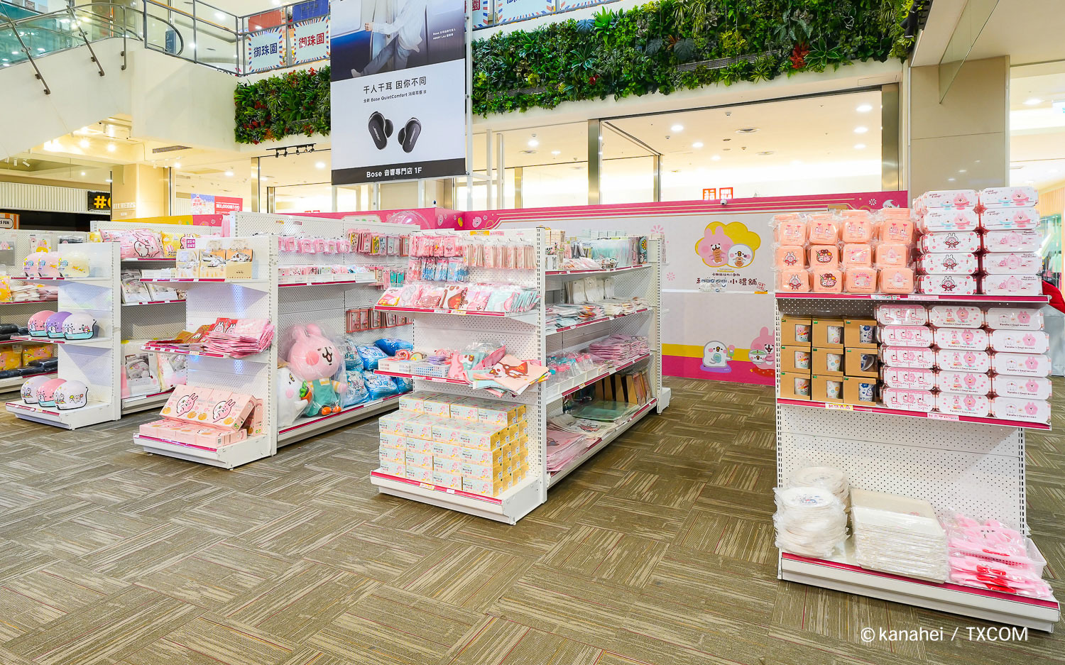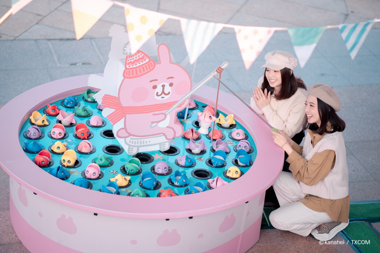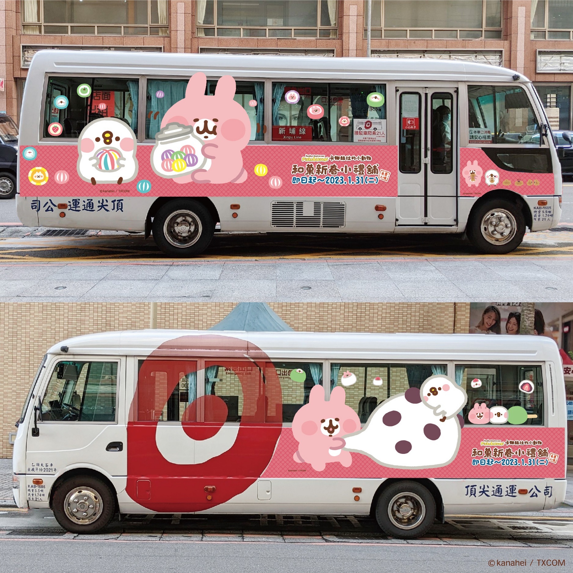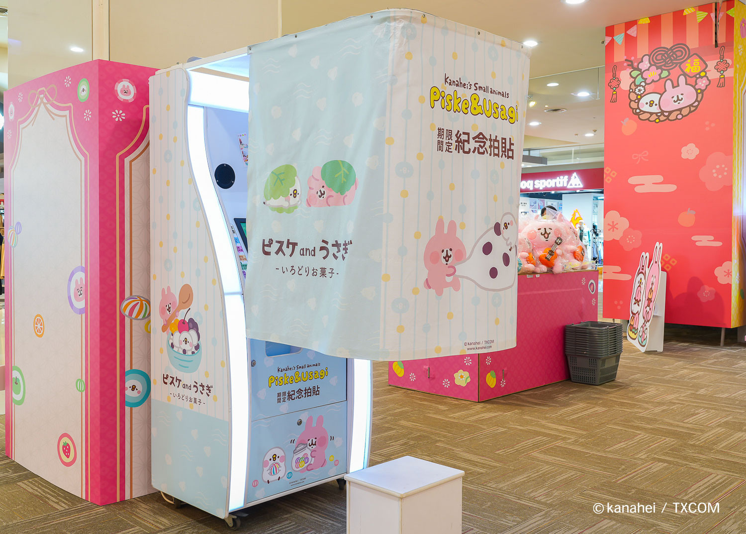 而在環球購物中心新北中和登場的「卡娜赫拉的小動物-和菓新春小禮舖」,這次還推出「卡娜赫拉的小動物造型接駁車」,並且推出了 3 大新春打卡點讓粉絲體驗新春兔年氛圍。首先是店外超過 10 米寬「兔年夢幻美食牆」合影,再穿越琳瑯滿目商售區到店內,與掛著粉紅兔兔注連繩的「新春打卡牆」及吃著點心的小動物們合影,再到「巨型和菓扭蛋機」挑戰新年好手氣。