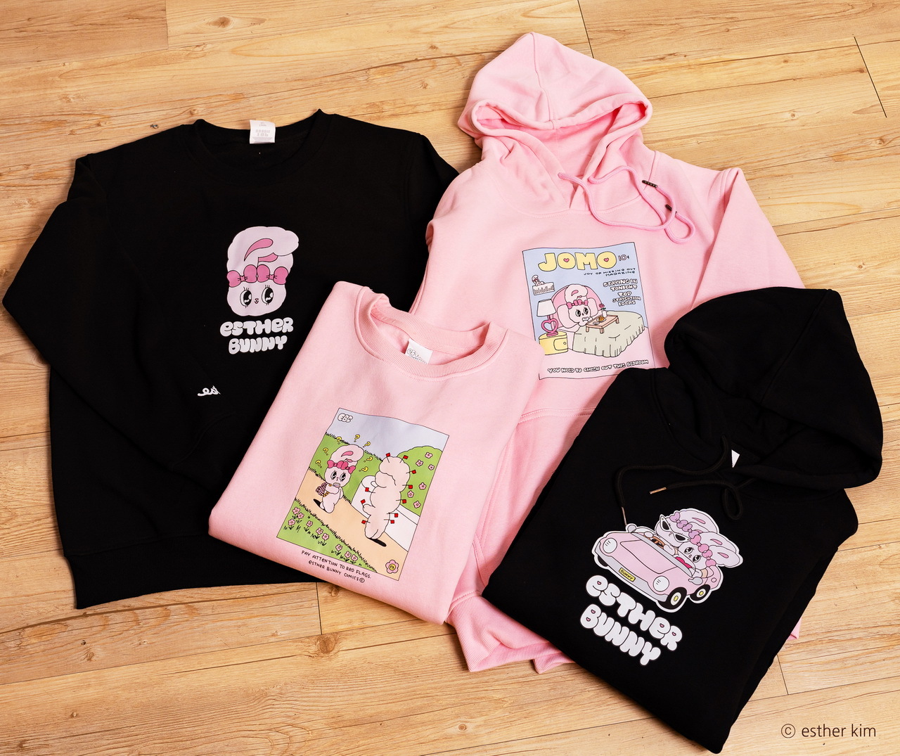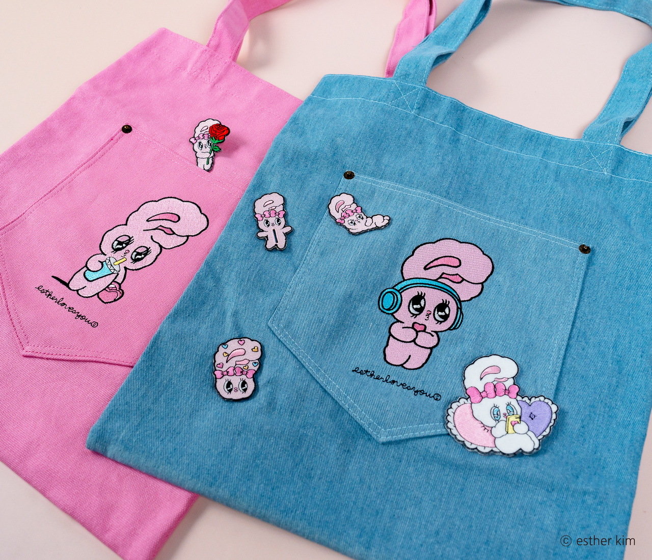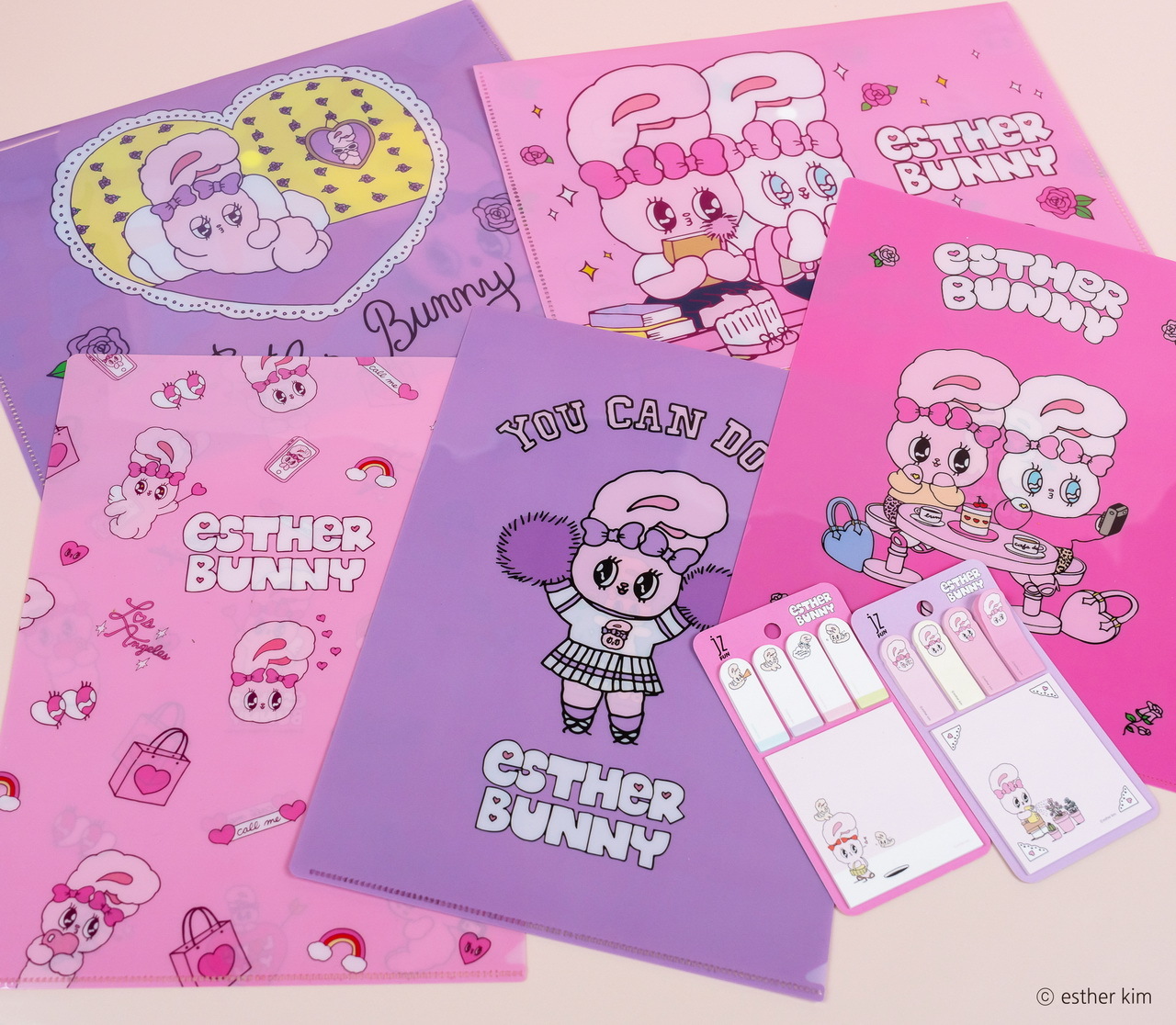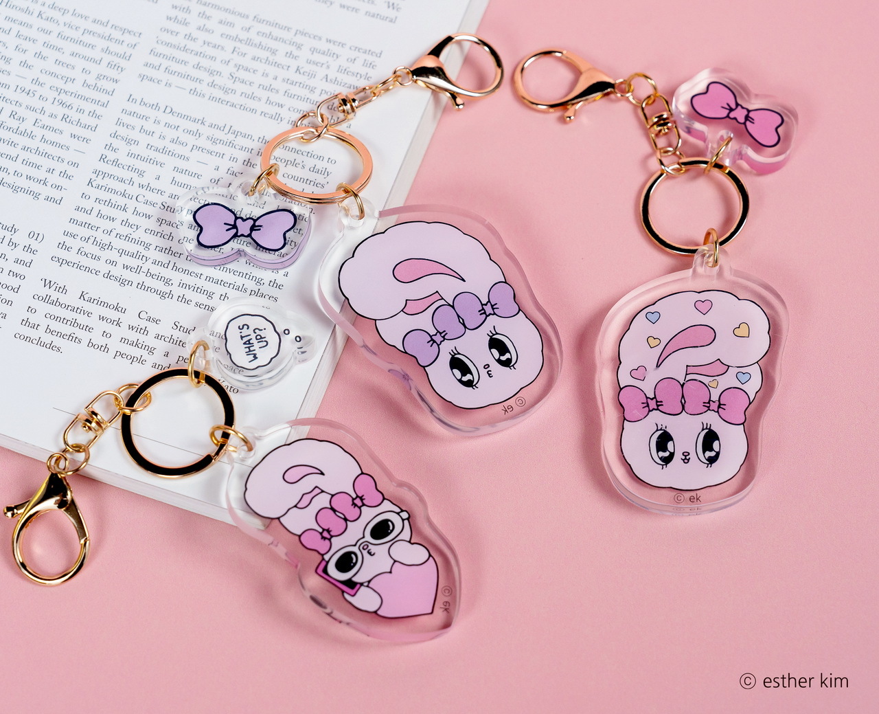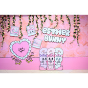 美籍韓裔插畫家Esther Kim被稱為「韓國最夢幻插畫家」,將自己在美國洛杉磯出生、在東京長大的多國文化背景及對藝術潮流的敏銳見解,透過獨特畫風搭配粉紅、桃紅及果凍色,創造了擁有豐富強烈、粉嫩童趣及甜美時尚的Esther Bunny,有著像天線般的大耳朵、超萌水汪汪大眼、捲翹睫毛及蝴蝶結是她的經典特色,Esther Bunny展現了插畫家的内心世界,表達出她在不同文化生活下的疏離感,也與作家一樣的她敏感又堅強,非常有主見且熱愛留意周遭文化,經常閲讀和逛博物館。