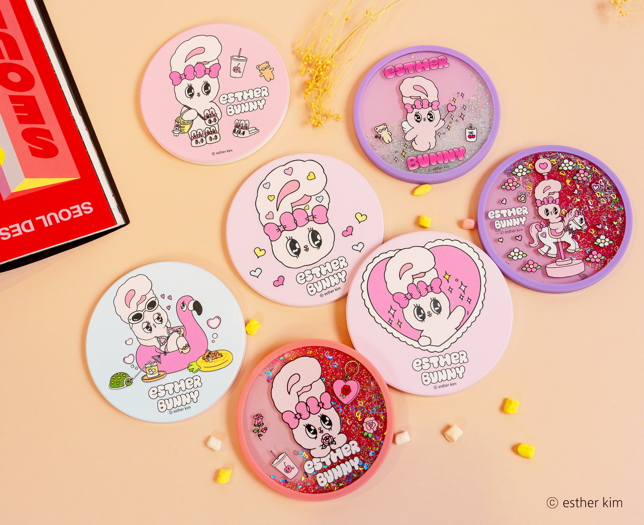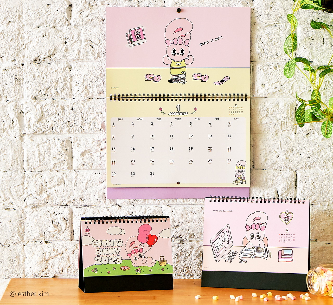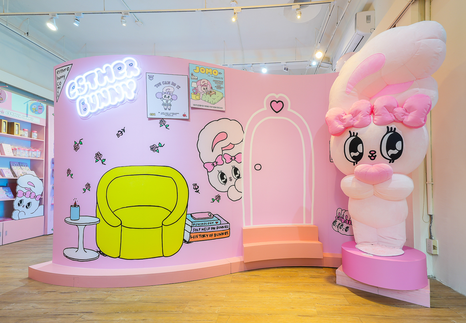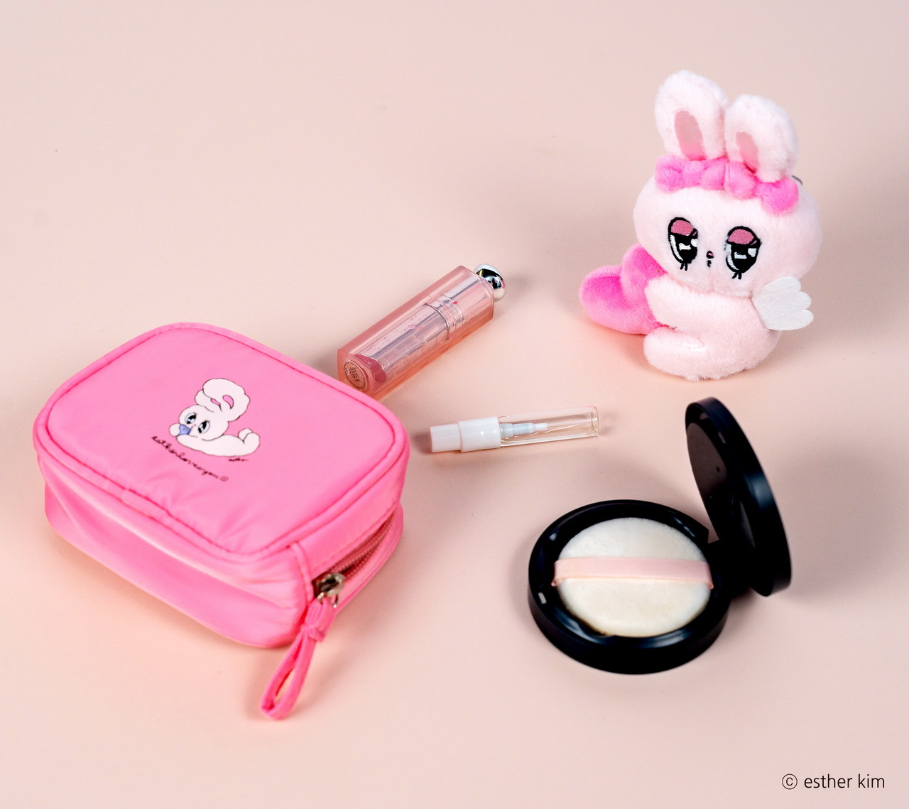 美籍韓裔插畫家Esther Kim被稱為「韓國最夢幻插畫家」,將自己在美國洛杉磯出生、在東京長大的多國文化背景及對藝術潮流的敏銳見解,透過獨特畫風搭配粉紅、桃紅及果凍色,創造了擁有豐富強烈、粉嫩童趣及甜美時尚的Esther Bunny,有著像天線般的大耳朵、超萌水汪汪大眼、捲翹睫毛及蝴蝶結是她的經典特色,Esther Bunny展現了插畫家的内心世界,表達出她在不同文化生活下的疏離感,也與作家一樣的她敏感又堅強,非常有主見且熱愛留意周遭文化,經常閲讀和逛博物館。