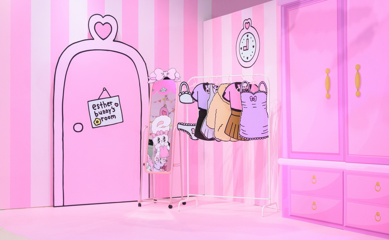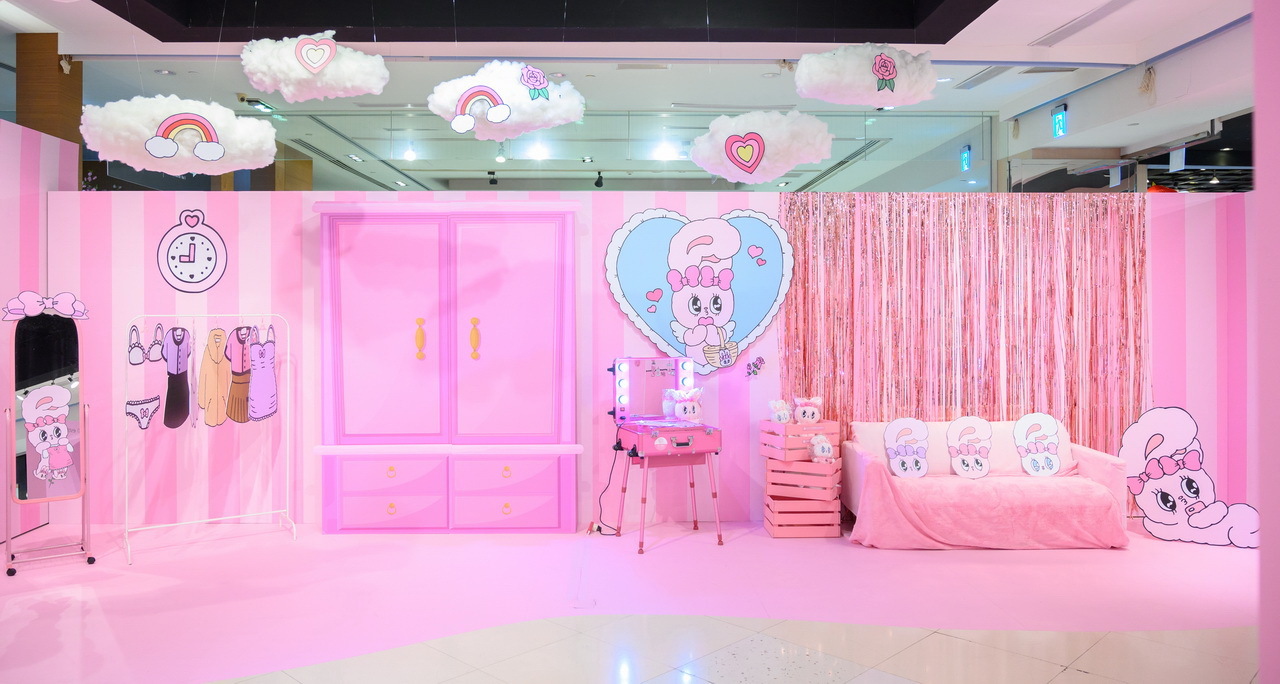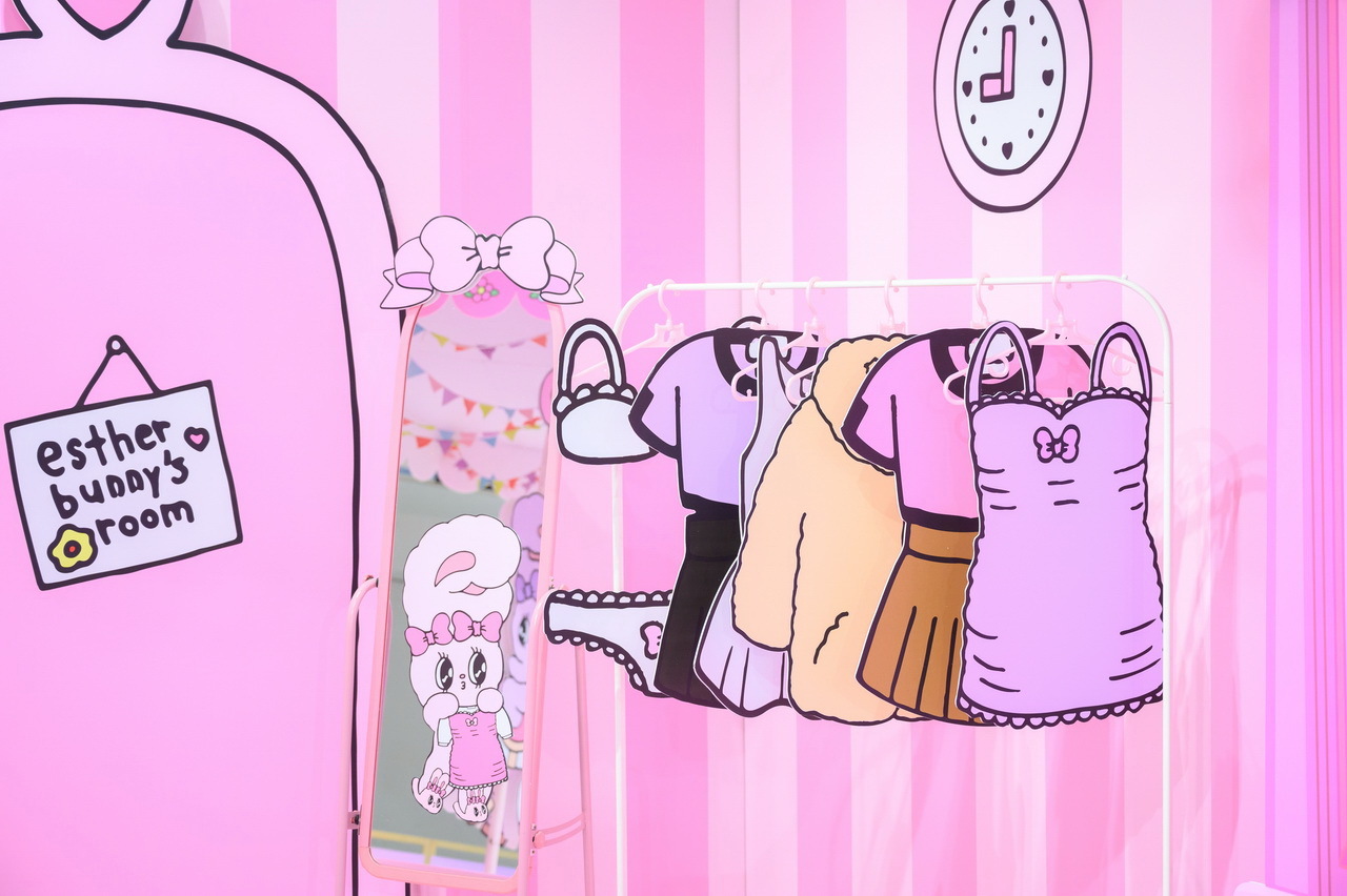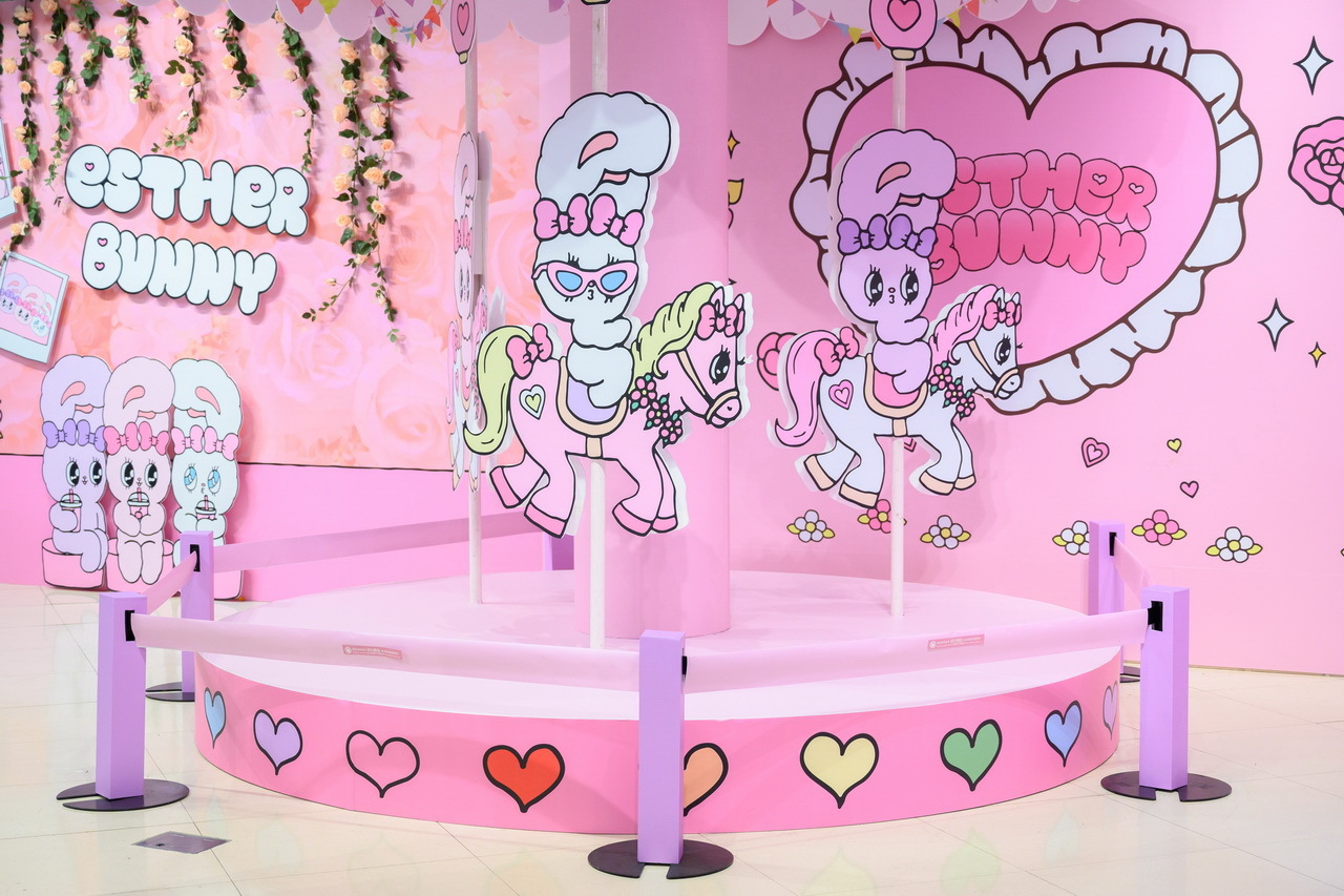 高雄粉絲們看過來!「Esther Bunny 艾絲樂小兔」在高雄夢時代打造了四大拍照點讓粉絲一次拍個夠!入口處先有一封「巨型邀請卡」,艾絲樂小兔拿著玫瑰花跳出信封俏皮的模樣,可愛到讓人瞬間融化,而一進門最吸睛的非「粉粉旋轉木馬」莫屬,看著艾絲樂小兔在上面遊玩,是不是也想衝上去拍照了呢!大大的衣帽間絕對是時尚可愛的艾絲樂小兔專屬空間,「粉色夢幻衣帽間」更是少女的夢想,一起來現場換裝參加派對吧!旁邊則是在「浪漫玫瑰花牆」前的艾絲樂小兔姐妹淘聚會,等著粉絲一起來拍照同樂!