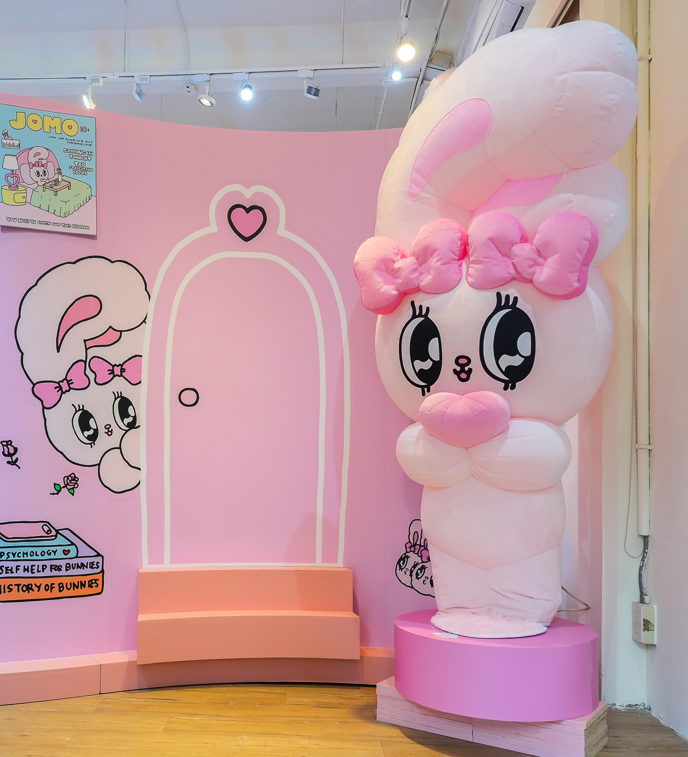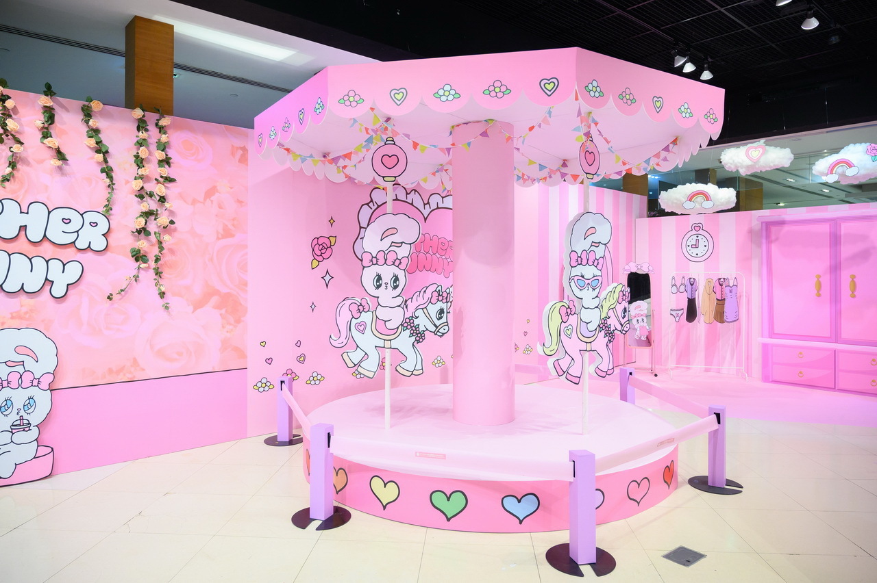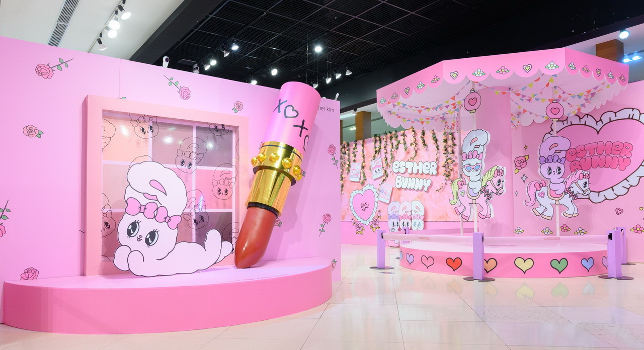 高雄粉絲們看過來!「Esther Bunny 艾絲樂小兔」在高雄夢時代打造了四大拍照點讓粉絲一次拍個夠!入口處先有一封「巨型邀請卡」,艾絲樂小兔拿著玫瑰花跳出信封俏皮的模樣,可愛到讓人瞬間融化,而一進門最吸睛的非「粉粉旋轉木馬」莫屬,看著艾絲樂小兔在上面遊玩,是不是也想衝上去拍照了呢!大大的衣帽間絕對是時尚可愛的艾絲樂小兔專屬空間,「粉色夢幻衣帽間」更是少女的夢想,一起來現場換裝參加派對吧!旁邊則是在「浪漫玫瑰花牆」前的艾絲樂小兔姐妹淘聚會,等著粉絲一起來拍照同樂!