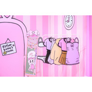 喜歡文化及閱讀的艾絲樂小兔一同來應援粉絲的日常!粉色「電腦包」貼上超萌造型的「防水萬用貼」,外出開會超搶眼的啊!想學習艾絲樂小兔認真工作的模樣嗎?那就不能缺少超可愛的文具套組,包含「L夾三入組」、「鈕扣資料夾」、「便利貼」,全部都是辦公必備小物!中午帶便當也想成為最時尚的一位嗎?快拿起艾絲樂小兔造型「便當包」及「餐餐包」,粉嫩提袋裝進各種食物,美味滿分啊!在辦公室怎麼能少掉飲料「杯墊」呢,7款不同造型杯墊,絕對不怕選不到自己想要的款式!包包中絕對少不了的酒精「空噴瓶」,4款圖案都想一次擁有!韓國進口的粉、藍兩款「肩背購物袋」貼上「刺繡裝飾貼」,打造你的專屬外出購物造型!
