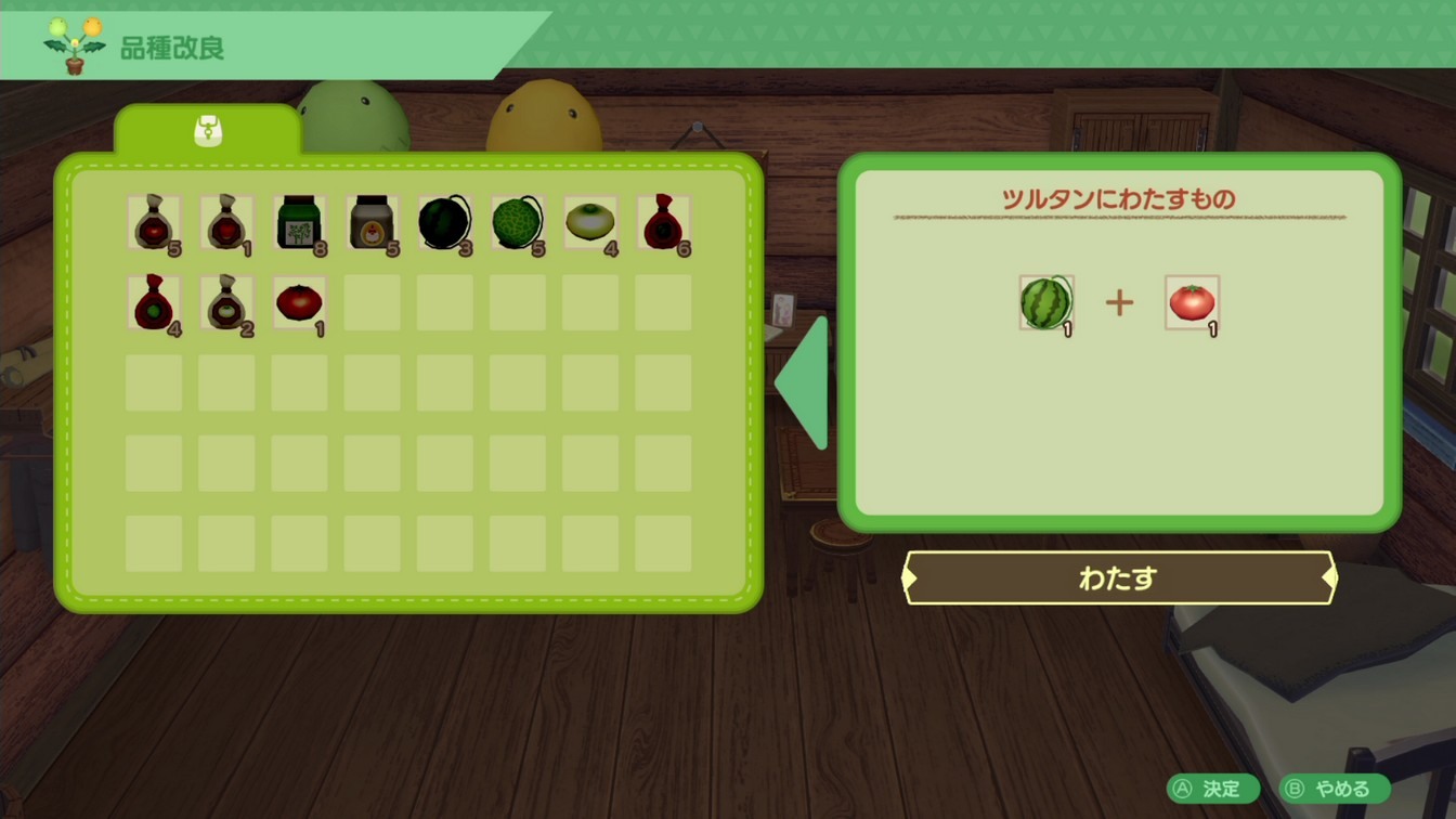 與高倉家從第二章登場的「咬咬藤」 熟稔之後,就能夠幫農作物進行品種改良。從稍微特殊的農作物到前所未見的稀有品種。利用品種改良來打造種類豐富的農田吧!