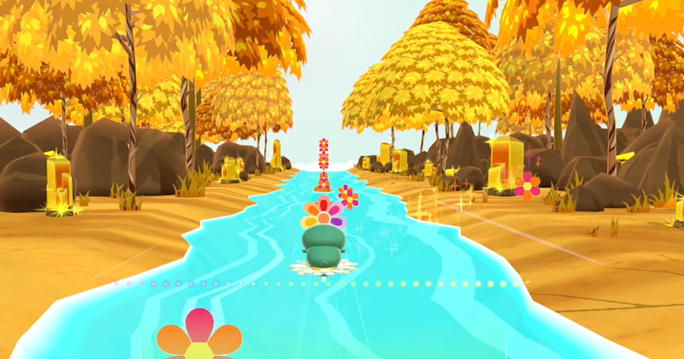除了照顧外,玩家也可以協助 Cuppa 完成任務,像是此次在台北電玩展版本展示陪伴 Cuppa 在河道上蒐集花朵的跑酷小遊戲。