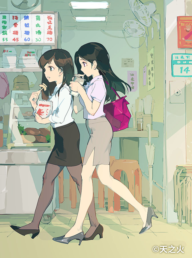 以台灣 Office Lady 的日常為主題,自 2017 年以來,天之火以每年一本的方式持續創作台灣 OL 系列,將自身的路上觀察經驗,融合攝影中壓縮透視的構圖形式,透過十幾年繪圖歷練的豐富表現力,將片段的光景轉化為一幅一幅充滿生活感的畫作。台灣 OL 系列不僅引起台灣人們共同生活記憶的感動,也於 2020 年獲得日本 i.m.a. 展優秀賞,並且於 2022 年在日本大阪舉辦了「ON-OFF-ON」個展,成為台灣最受矚目的插畫家之一。