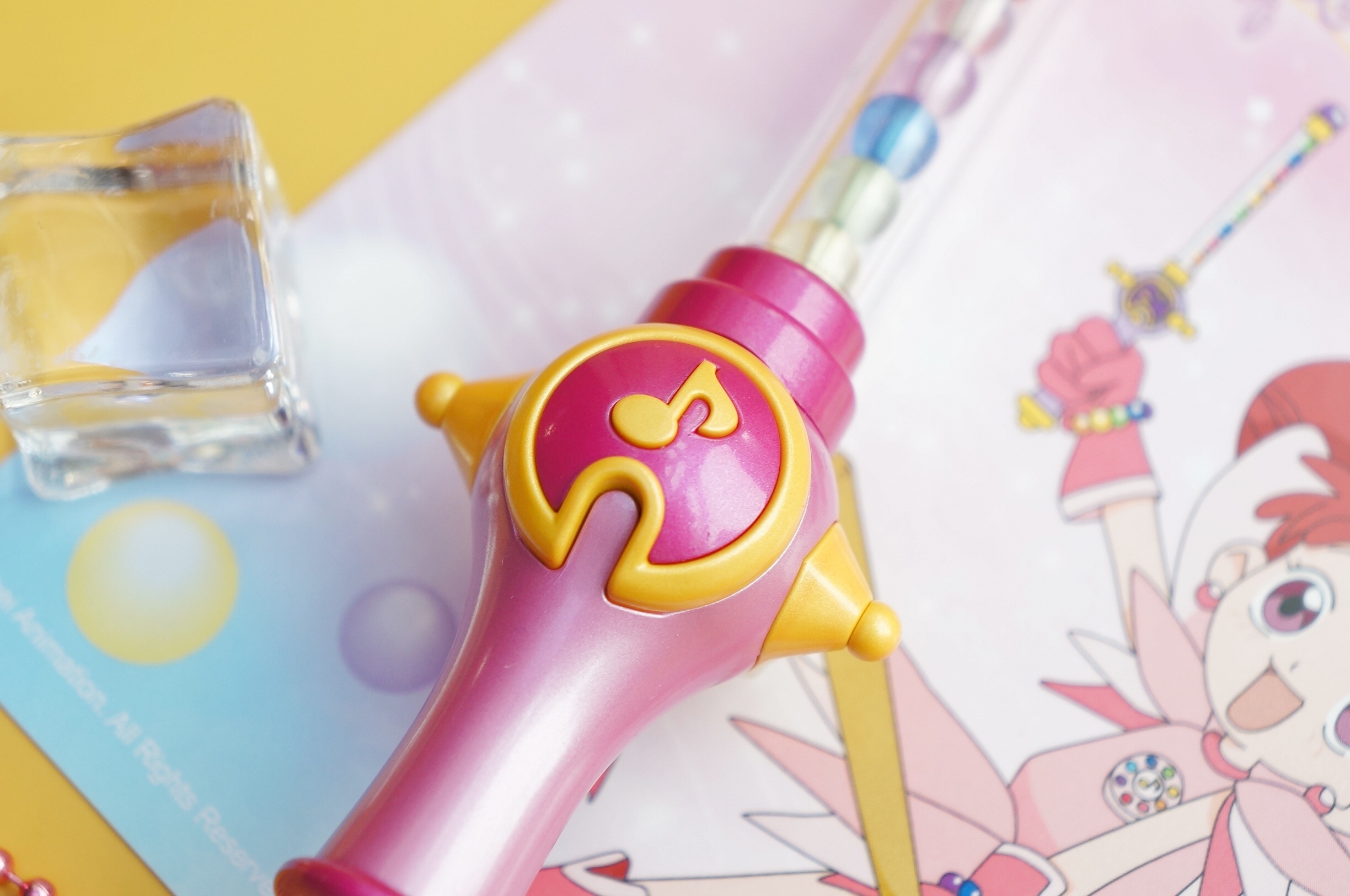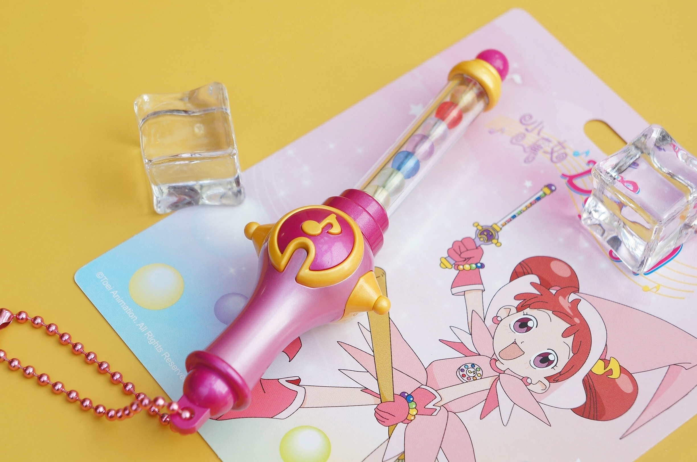 這次推出的小魔女 DoReMi icash2.0 共有「轉換器」及「波隆」兩款,動畫中提供小魔女變身及呼喚道具的轉換器,現在縮小成手心大小的 icash2.0,外觀如同動畫中一樣,表面有著八顆不同顏色珠子,只要將轉換器靠近機台感應區,中央音符圖案就會發出亮光,搭配上另一款「波隆」就能模仿動畫中呼喚出波隆的經典絢麗場景,相當有趣!「波隆」在動畫中只要配合小魔女的咒語就能施展各種神奇魔法,而這款「波隆 icash2.0」的外觀配色與動畫中幾乎一樣,中央棒身部分也參考動畫設計放入不同顏色魔法珠,如果將「波隆icash2.0」靠近感應區域,頂端的粉紅圓珠就會發出光芒,猶如施展魔法般絢麗。