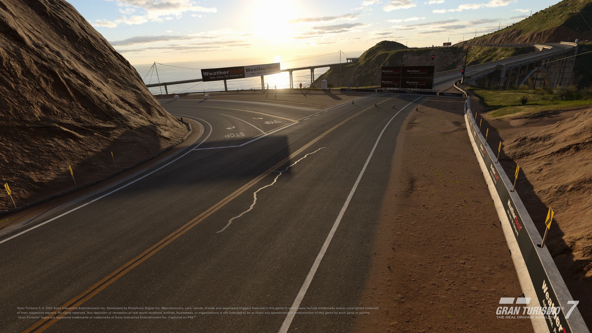 Gran Turismo 經典賽道大峽谷這回以嶄新的面貌回歸本系列。完整的「1 號高速公路」配置是相當具有挑戰性的賽道,沿途有全油門高速路段和緊湊曲折的技術彎道。較短的 2000 公尺「南段」配置以嚴峻的海拔變化和死角聞名,讓車手不敢掉以輕心。海洋與山脈交會的遼闊環境、大橋與隧道路段,共同構成這一處朝氣蓬勃的地點,還原在世界知名的蜿蜒海濱公路上駕駛的馳騁樂趣。