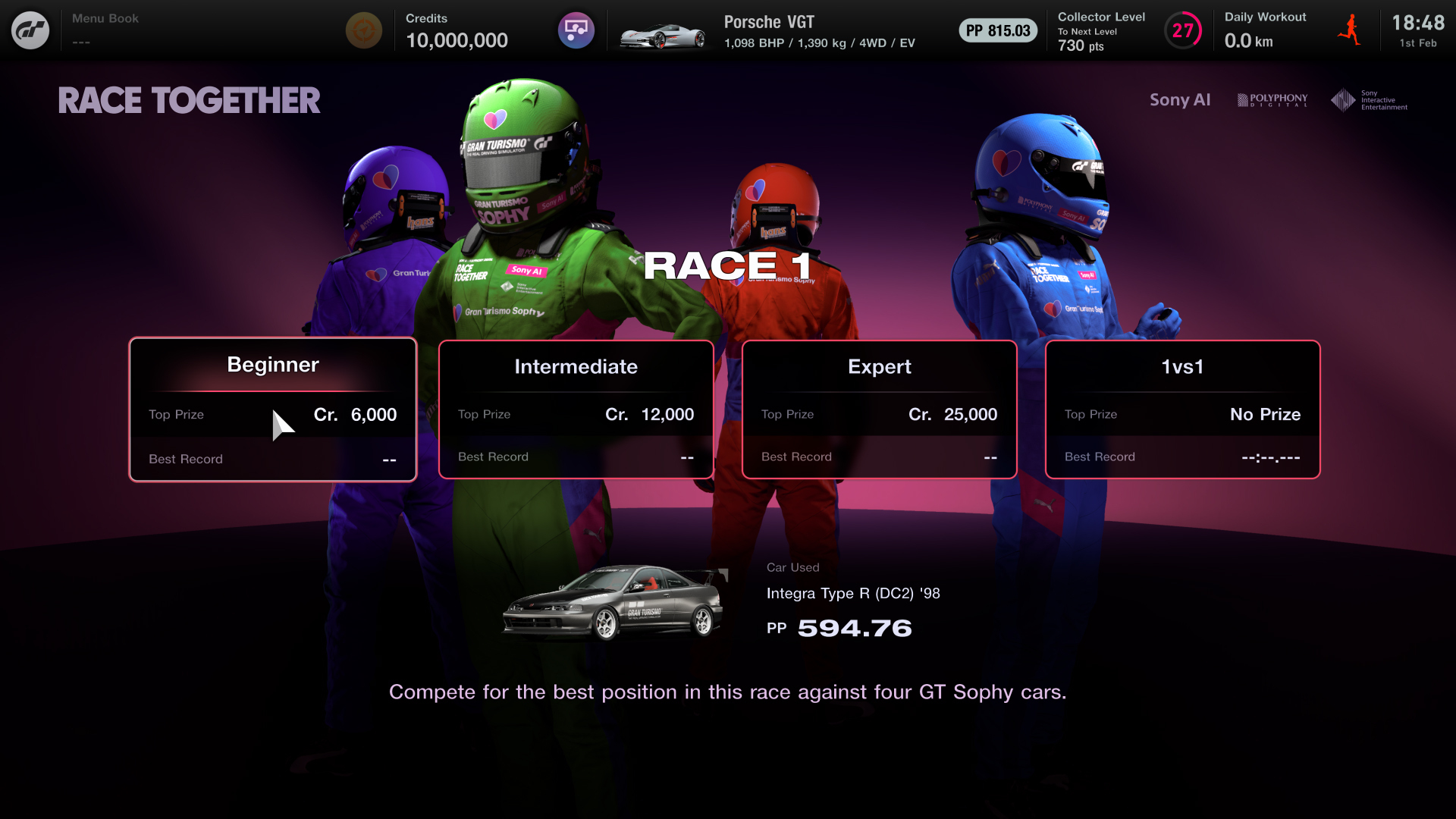 跑車浪漫旅 7》裡跟 GT Sophy 一較高下。這個特殊模式(自 2 月 21 日起至 3 月底)將作為遊戲內限時活動推出,讓所有《
