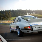 1973 年問世的 911 Carrera RS 2.7 是 Porsche 911 車系悠久歷史中首款採用 RS 徽章的車型。RS 代表「Rennsport」,在英語所代表的意思就是「賽車運動」,顧名思義,它是專門針對 FIA Group 4 類別進行開發的法規認證車型。承襲自 1973 基本款 911 S 的 2.4 升引擎已加大到 2.7 升,動力輸出可達 207.1 BHP。前端的氣壩可多加一個油冷卻器,後側採用標準經典鴨尾形擾流板,搭載延伸的後擋泥板以容納加寬的新後輪。Carrera RS 2.7 共推出 3 種等級:Touring、Sport 和 Racing,而即使是豪華等級 Touring 車型,重量也不到 1,100 公斤。