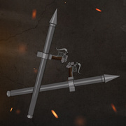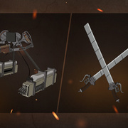 》象徵性的配備「立體機動裝置」與「雷槍」,前者在玩家裝備後,就可以有辦法在空中攻擊下方的對手。