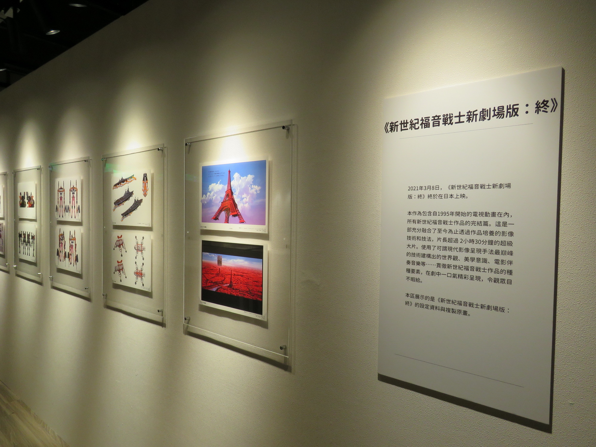 本次特展會場不但有「第 1 章 新世紀福音戰士的設定」的 1:1「绫波零(暫稱)」等身大模型、「第三章 原畫中的新世紀福音戰士」由動畫師手工繪製約 230 幅新劇場版的複製原畫,在「第四章 新劇場版區」可觀賞今年於台灣上映的《新世紀福音戰士新劇場版:終》的設定資料、複製原畫,以及日本上映時的電影海報,台灣版海報同步加碼展出。「第五章 插畫藝廊」則是展示從《新世紀福音戰士插畫集 2007-2017》精挑細選深入參與新世紀福音戰士製作的創作者所描繪的全彩插畫作品。複製插畫也能於展場預約訂購,將這份感動帶回家細細品味。